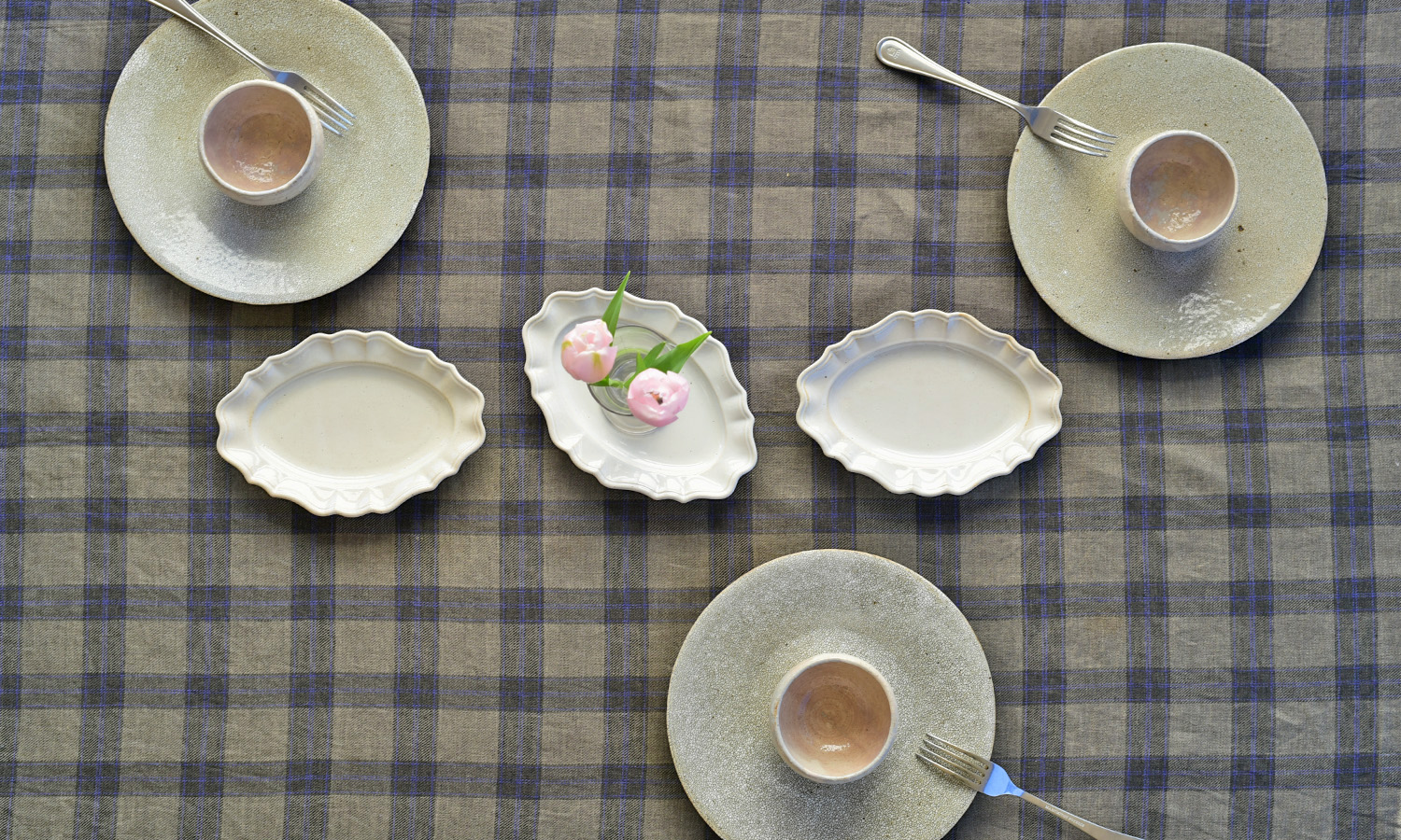 新年の集まりはコース料理でおもてなし。 前菜は魚介のジュレとピンチョスで華やかに。 素朴な質感の器とタータンチェックのクロスで、 温かさを感じる冬のコーディ...