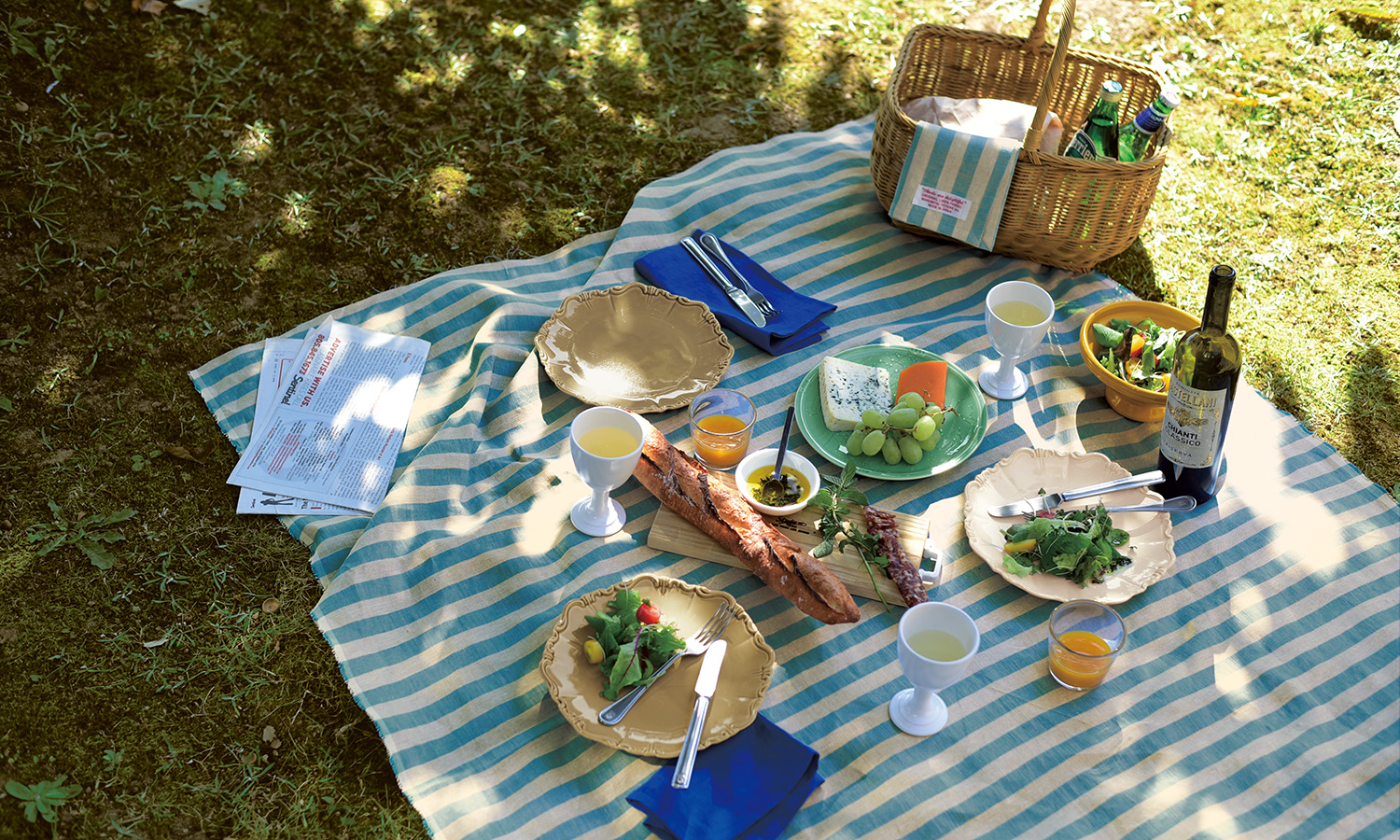 ジャルダンはフランス語で「庭」という意味。 青々とした芝生に広げるクロスや、 庭に張り出すテントやパラソルをイメージした太めのストライプ柄になっています。 ...