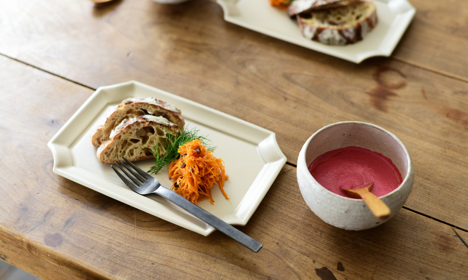 土の素材感がよく現れた器や、ぽってりとしたおおらかな器を選び組み合わせることで、気軽に会話を楽しめる温かい空間を作ります。素材感やアンティークのようなデザイ...