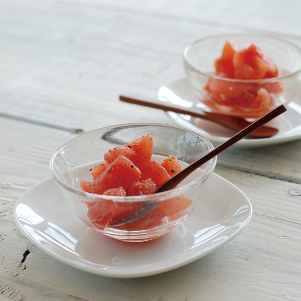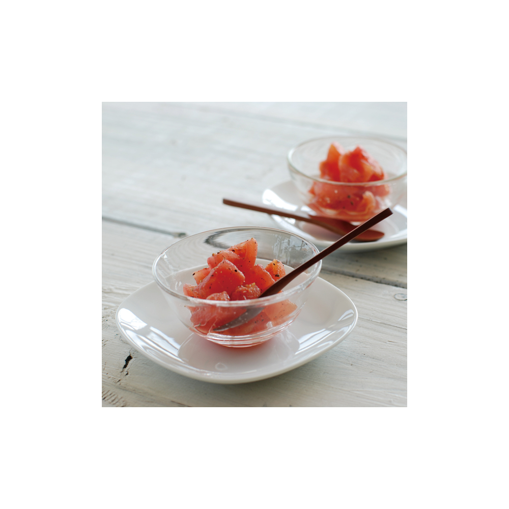 すっきりとした、という意味のコルニーチェ。四角とも丸とも言えない絶妙で飽きのこない形をしています。そのため業務用、贈答用、家庭でのデイリーユーズにとどんな場面にもぴったり。電子レンジ、食器洗い乾燥機と色々な機器が使えるのも嬉しい所です。5”プレートは取り皿にぴったり。家族分揃えてもいいですね。