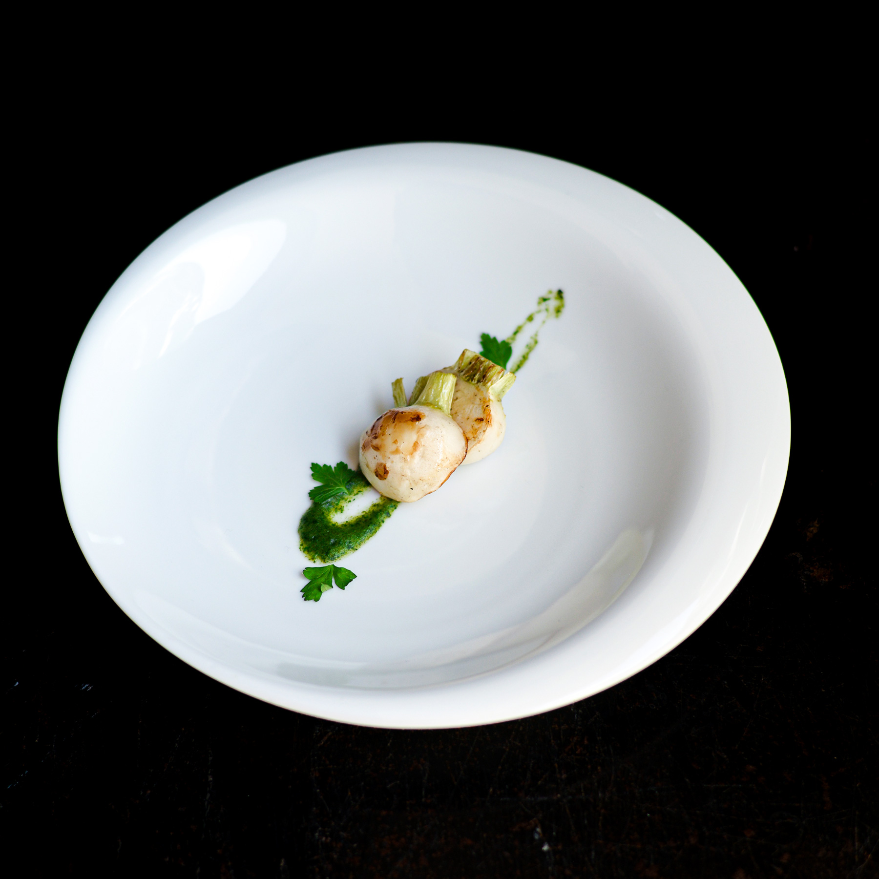 10”プレートは真上からのアングルは内円と外円の蝕の様がよくわかります。余白を意識した盛り付けは料理が美しく見えます。