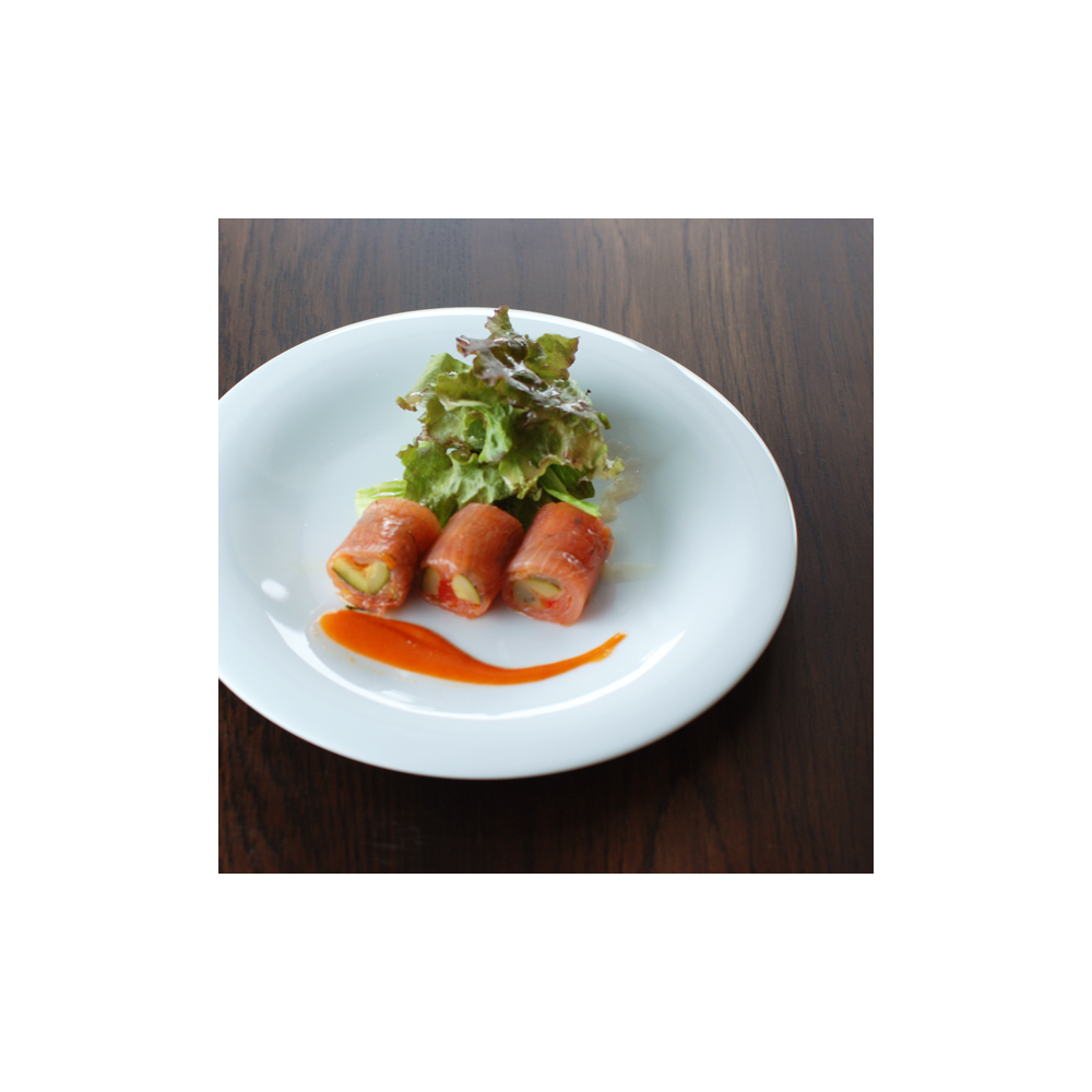フェッタとはイタリア語で、「薄切りの」という意味です。極力フラットさを意識したシンプルなプレートで、滑らかなラインで仕上げたフォルムは料理を優しく受け止め、和洋問わず、また盛りつける物を選ばないプレートです。
