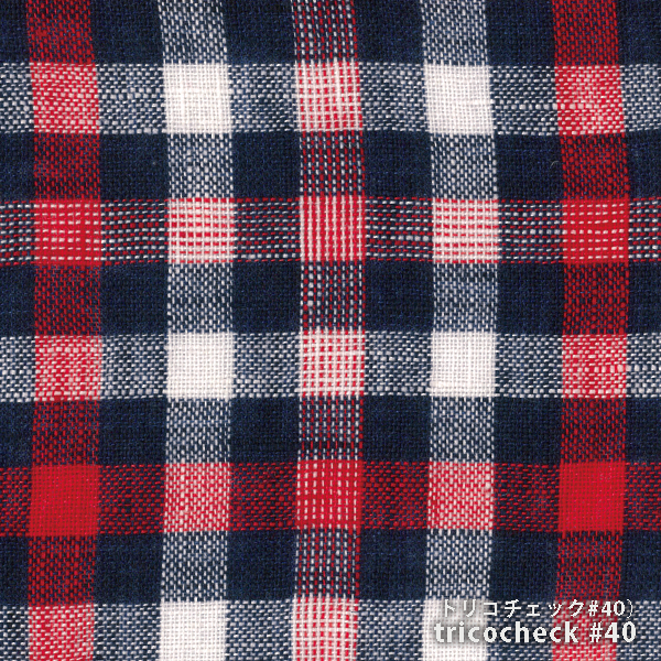 フランス語で3色を意味するトリコロールから名づけられました。赤、濃紺、白の糸で織られており、ややざっくりとした透け感のある生地。はっきりとした色ですが、糸の太さが均一でないため表情があり、優しい印象。---- スタジオエムのリネンは、主にフランス原産の長い繊維を使ったリネン糸を使用。選り分けた繊維を上質な糸にし、日本でなめらかで丈夫な生地に織り上げられます。オリジナルのチェックやストライプなど、デザインこだわって仕立てられた製品は毎日の暮らしの中で風合いや愛着が増し、ずっと心地よく使っていただけます。