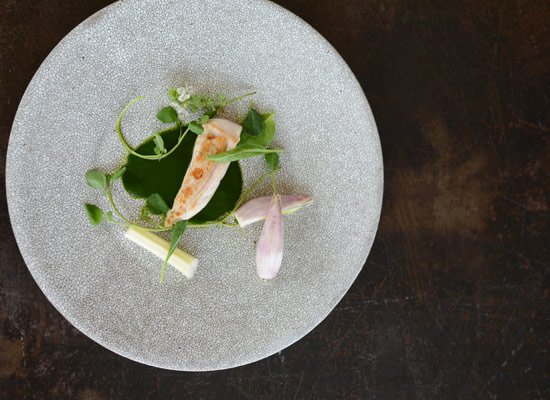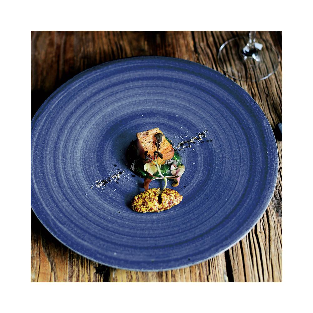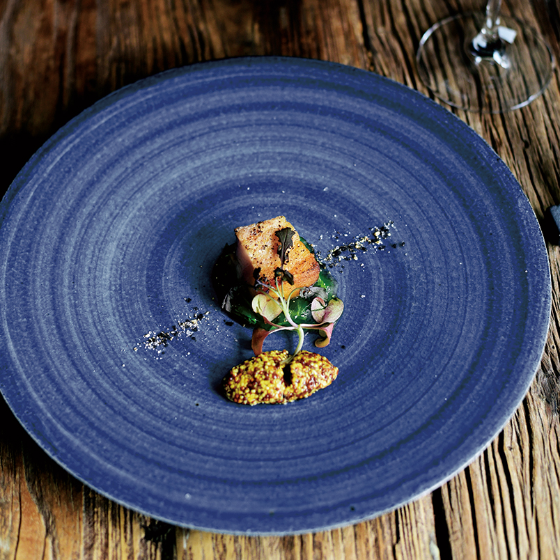 プレートは、器の魅力を存分に生かす為、大胆に余白を残して料理を盛りつけると、
