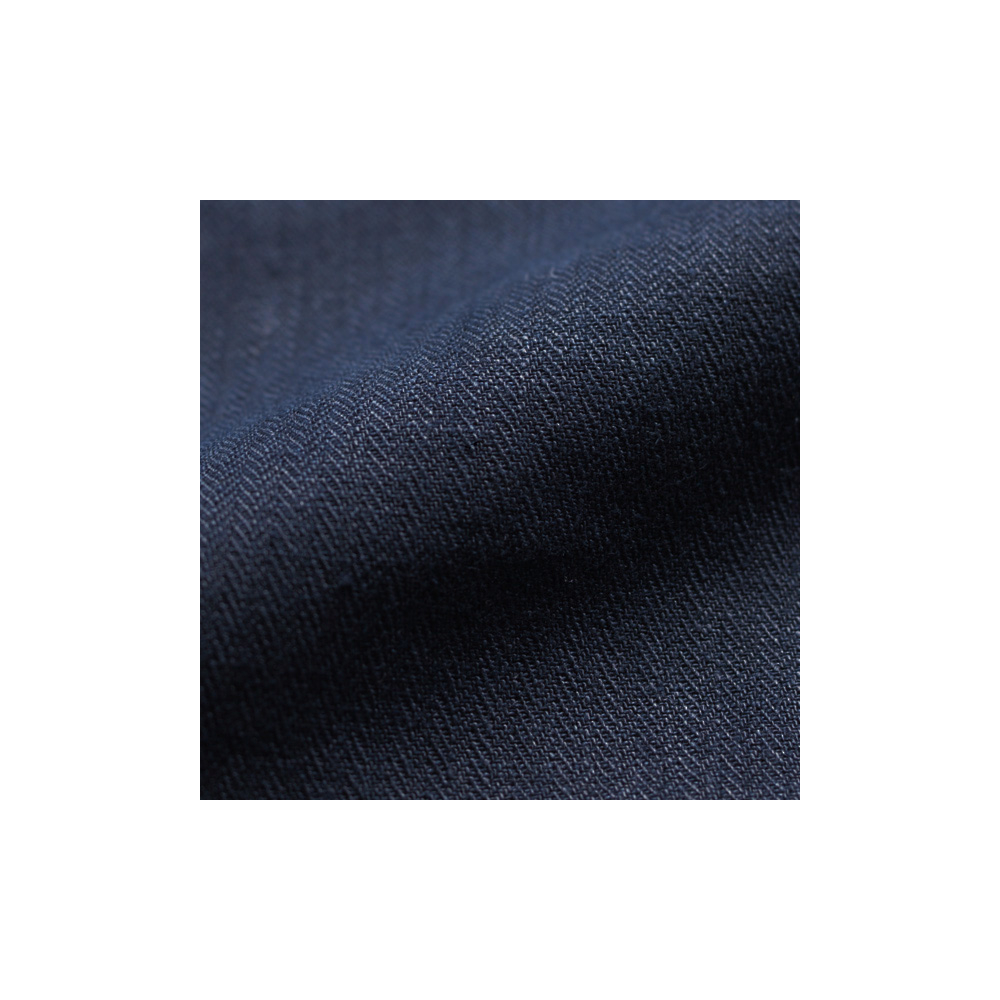 ヘリンボン#40に新色のネイビーが登場。深みのある濃紺色に染めることで落ち着いた品のある生地に。---- スタジオエムのリネンは、主にフランス原産の長い繊維を使ったリネン糸を使用。選り分けた繊維を上質な糸にし、日本でなめらかで丈夫な生地に織り上げられます。オリジナルのチェックやストライプなど、デザインこだわって仕立てられた製品は毎日の暮らしの中で風合いや愛着が増し、ずっと心地よく使っていただけます。