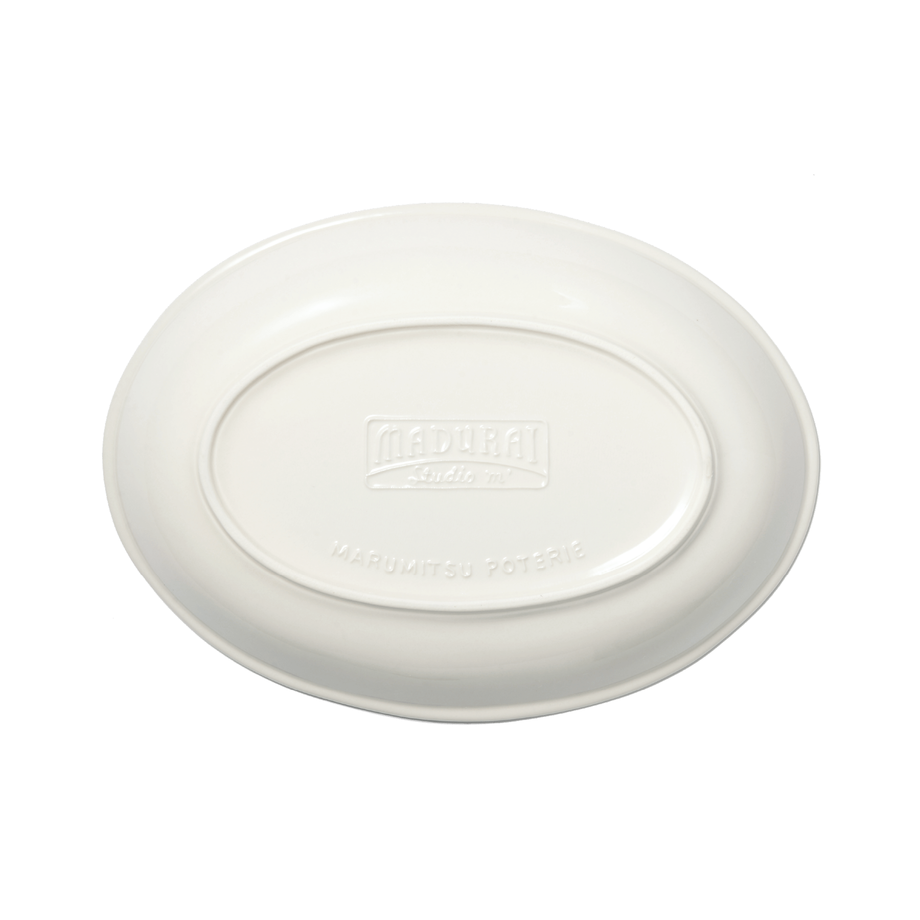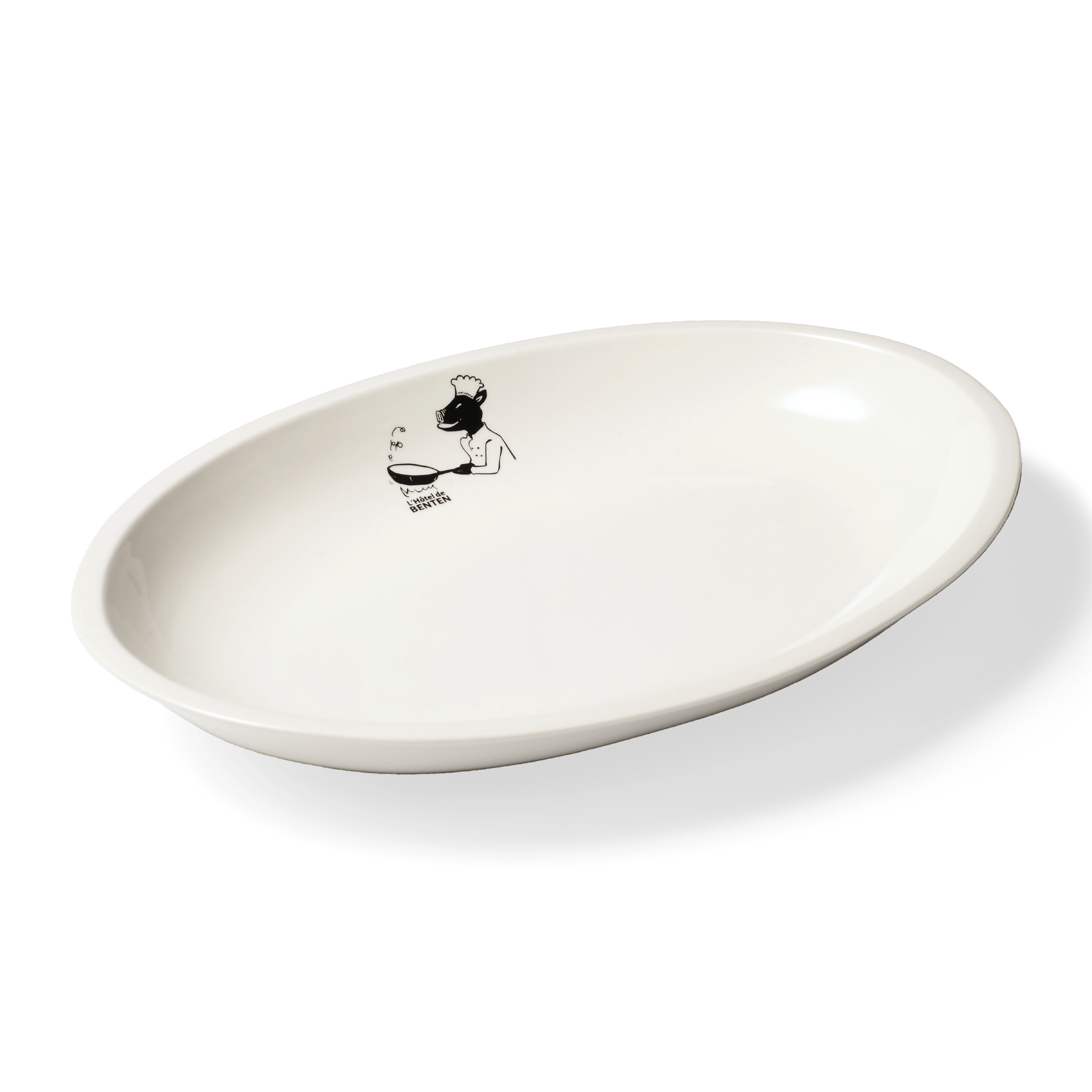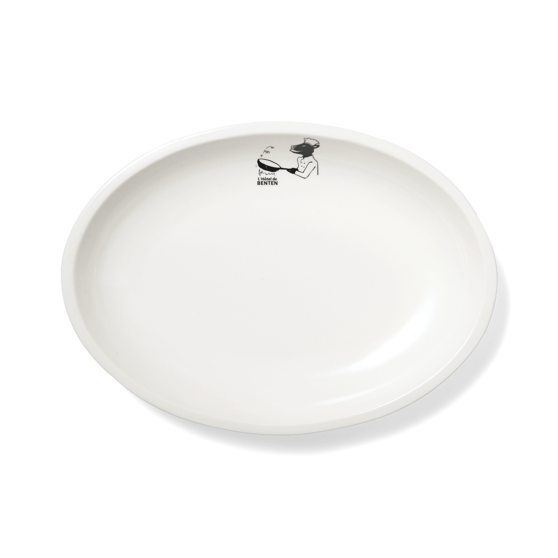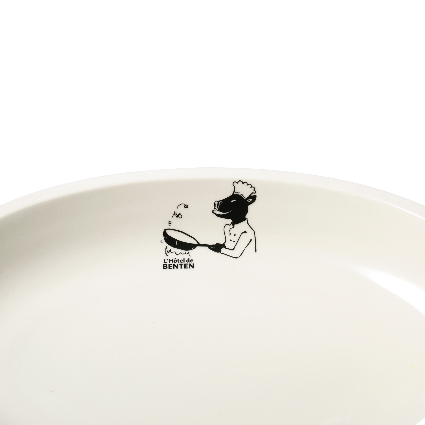 カレーのための器です。カーブを描きながらしっかりと立ち上がりのある形状はスプーン運びもスムーズで、お米を最後まで掬いやすい形。 重なりもよく収納時もかさ張りません。 webオリジナルはツルッとした釉薬に架空のホテルで働くシェフがスパイスカレーを作っている絵柄を絵付け。 ホテルのダイニングで使われている雰囲気で作られたカレー皿です。 Lはボリューム満点のカレーを食べたい方へぴったりのサイズ感。 ※Lはつやがあり、Mはつやのないマットな質感です。
