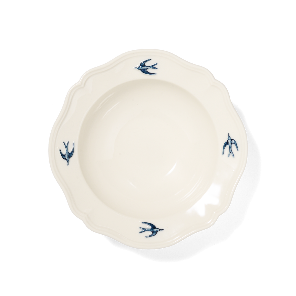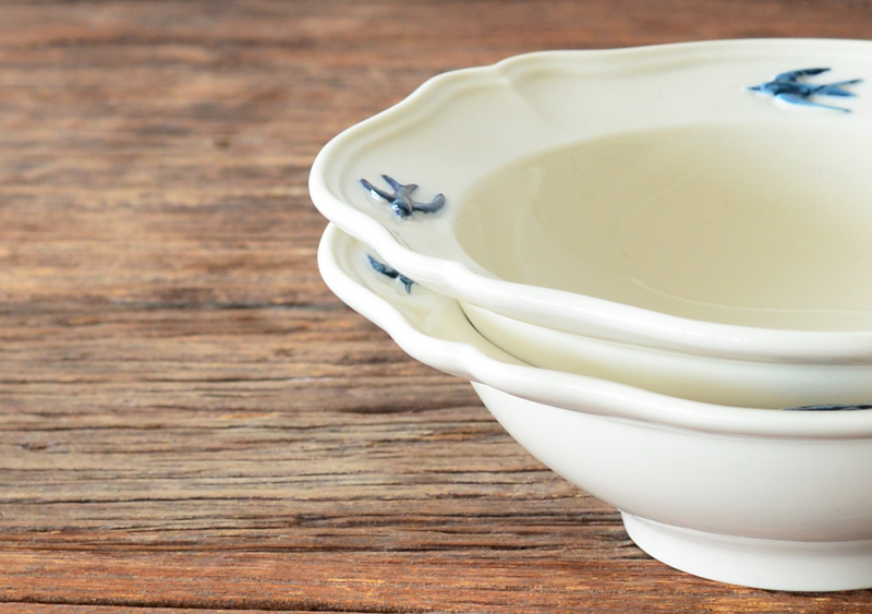 花のようなリムにツバメが嬉しそうに飛ぶ姿に心がときめきます。