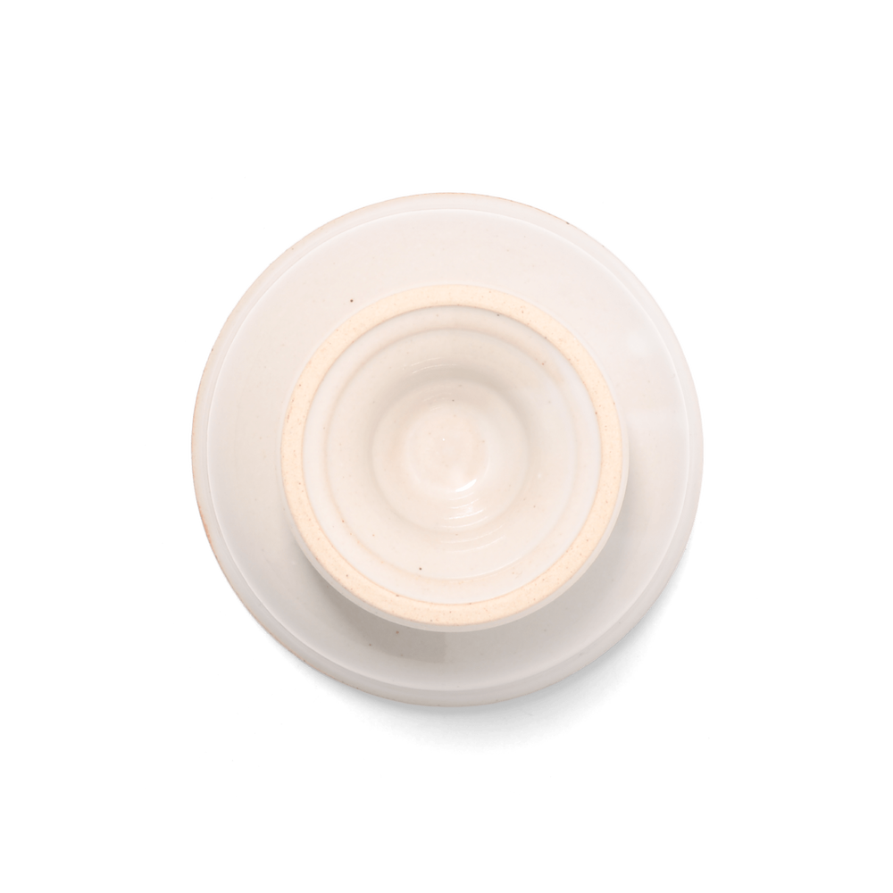 台座部分には控えめな段差を装飾として施し、釉薬による色の変化を引き立てています。