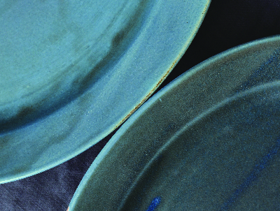 一個体の中で、釉薬や化粧土のムラがでます。1つの器の中において、色の表情が均一ではない箇所がある場合があります。器の形状などにより、釉薬の掛かり方が厚かったり、薄かったりする箇所があることが一つの要因です。それにより土の表情が一つの器のなかにおいても変化を見せます。