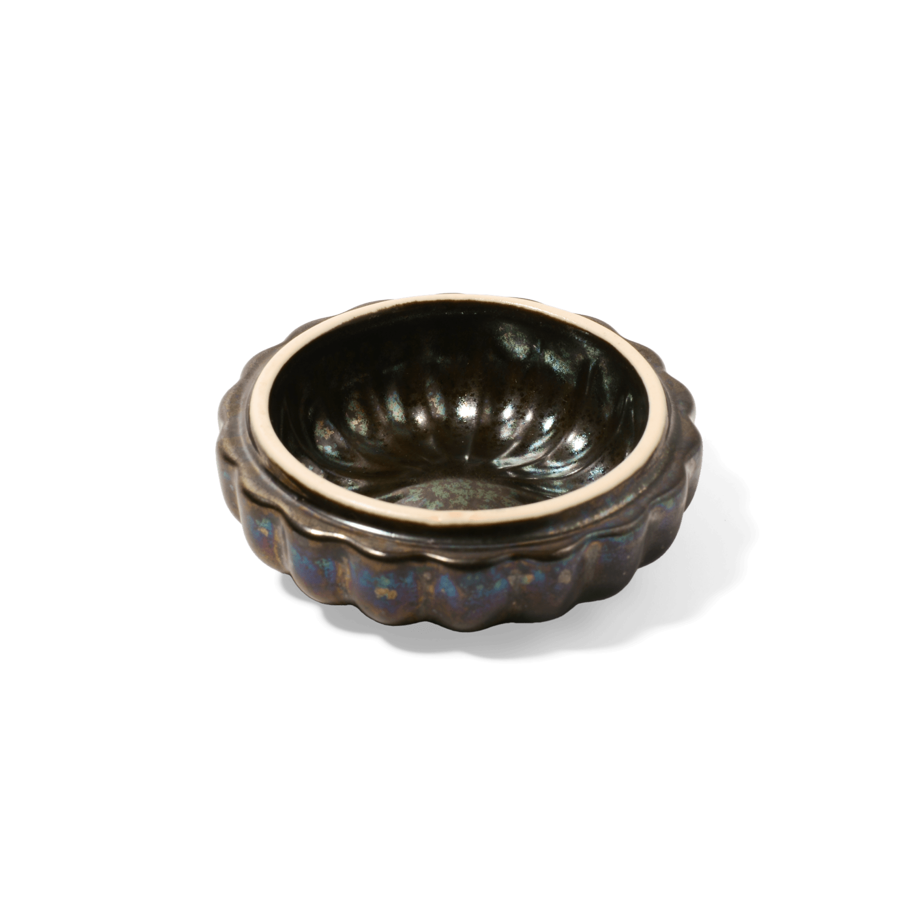 窯変黒は、金属釉による艶ときらめきが特徴。料理とのコントラストを楽しめます。