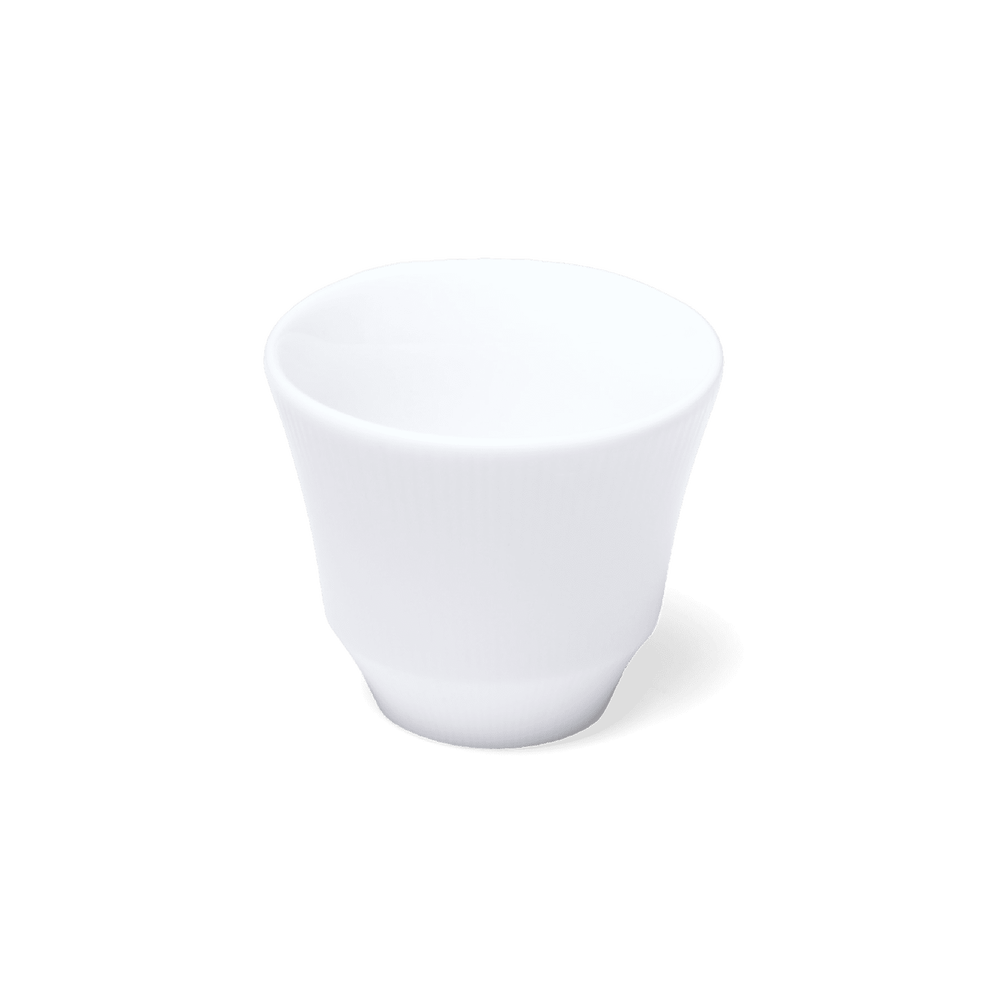 アペルトはイタリア語で「開ける」という意味。シンボリックなフォルムと無数に施された筋が美しいシリーズです。青みがかった白磁が清々しく、小さめの台が全体的に緊張感を与えているので、フォーマルな雰囲気にも適します。