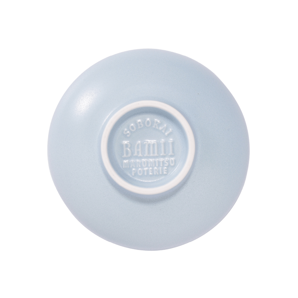 柔らかいマットな質感のベージュとアイスブルー、手触りも優しく口当たりの良さがあります。