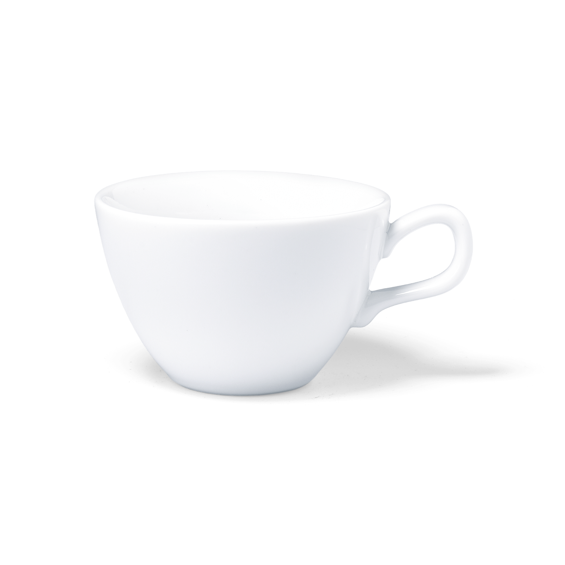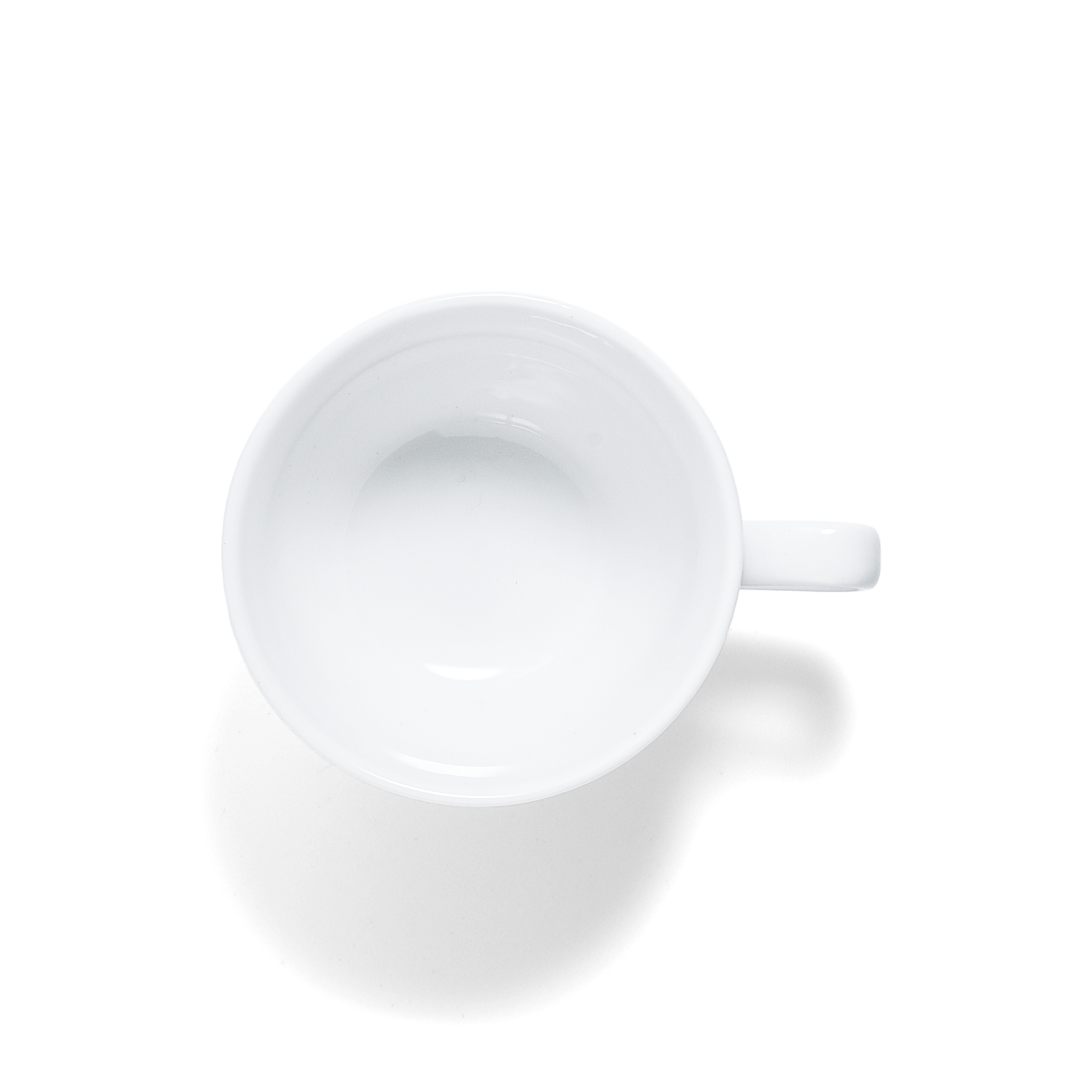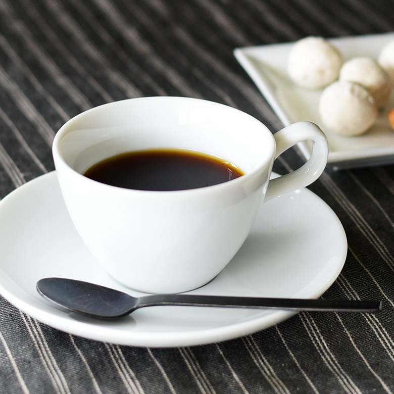 スマートなフォルムと特徴のあるハンドル、全体的にプレーンな印象ながらこだわりのあるカップ&ソーサーです。強度的にも問題なく、適度でしっかりとした重量感も心地よい飽きの来ない形状は、フォーマルでもカジュアルでも合わせられ、デイリーユーズに適しています。6oz、8oz、10oz、ティーからなり、特に10ozはたっぷり入るサイズ。ソーサーがそれぞれ兼用でまかなえるので便利です。