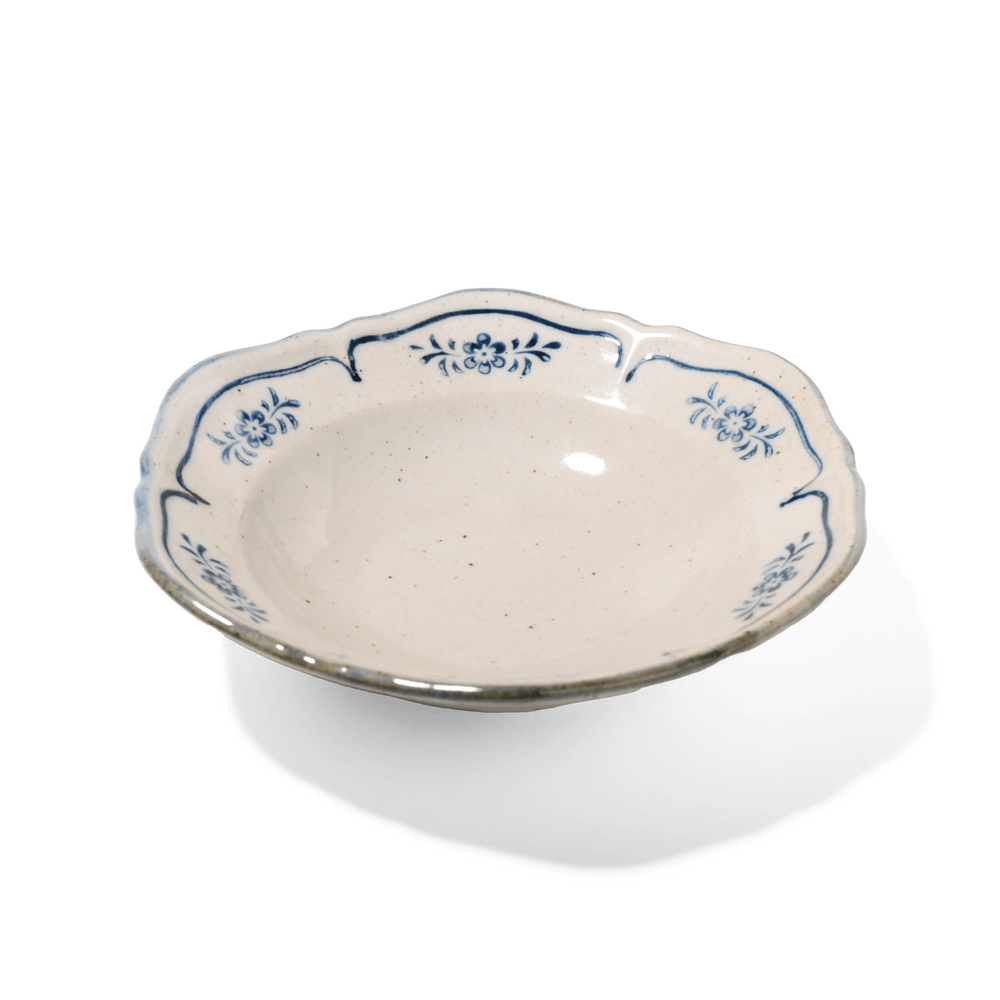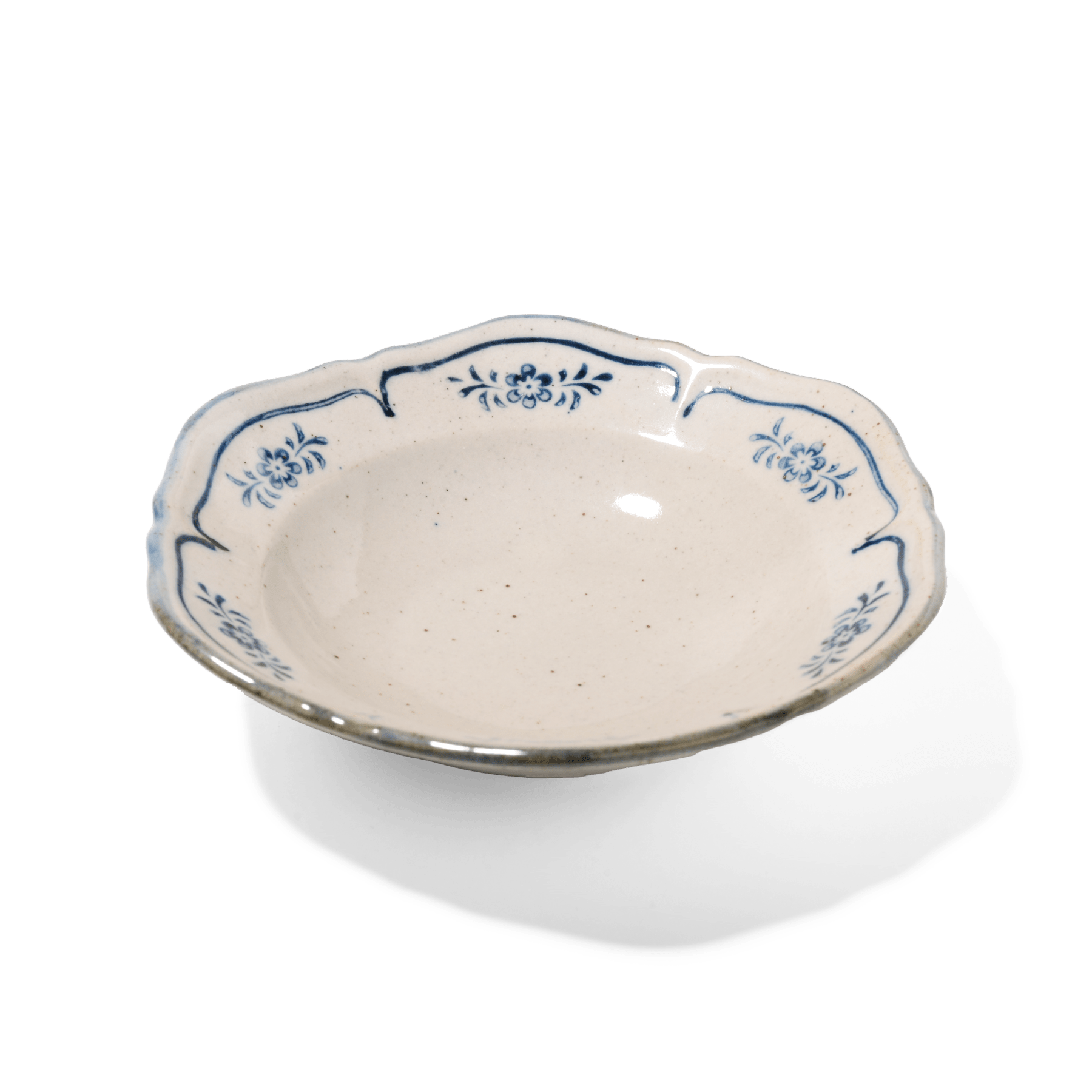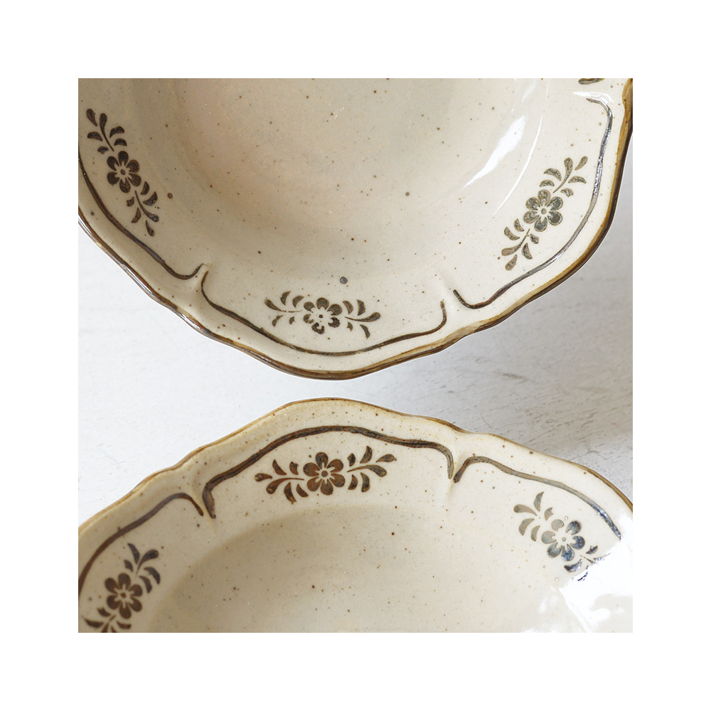 カシェは筆と判子を使って施した、どこか懐かしい雰囲気のある絵付けの器。