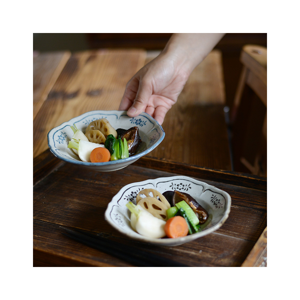 土もの素材に呉須や錆の絵付けという、伝統的な和食器の仕様に、