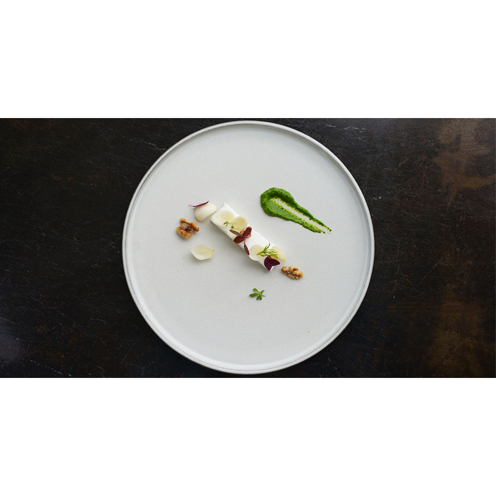 イタリア語で円や輪という意味のチェルキオは、食事から人の輪が生まれるという意味が込められています。自由な盛付けの出来るこのフラットな盛り面と質感は、料理を作る人の感性を刺激してくれます。乳白釉を使用した白と鉄分を多く含む虹彩釉を使用した黒の定番の2色は、品がありながらシャープな印象。そして新しく加わったグレイッシュホワイト、アイスブルー、ダークグレー、銀彩の4色はモダンな印象。9寸皿は、余白の美を生かしたメインディッシュプレートとしてお勧めです。