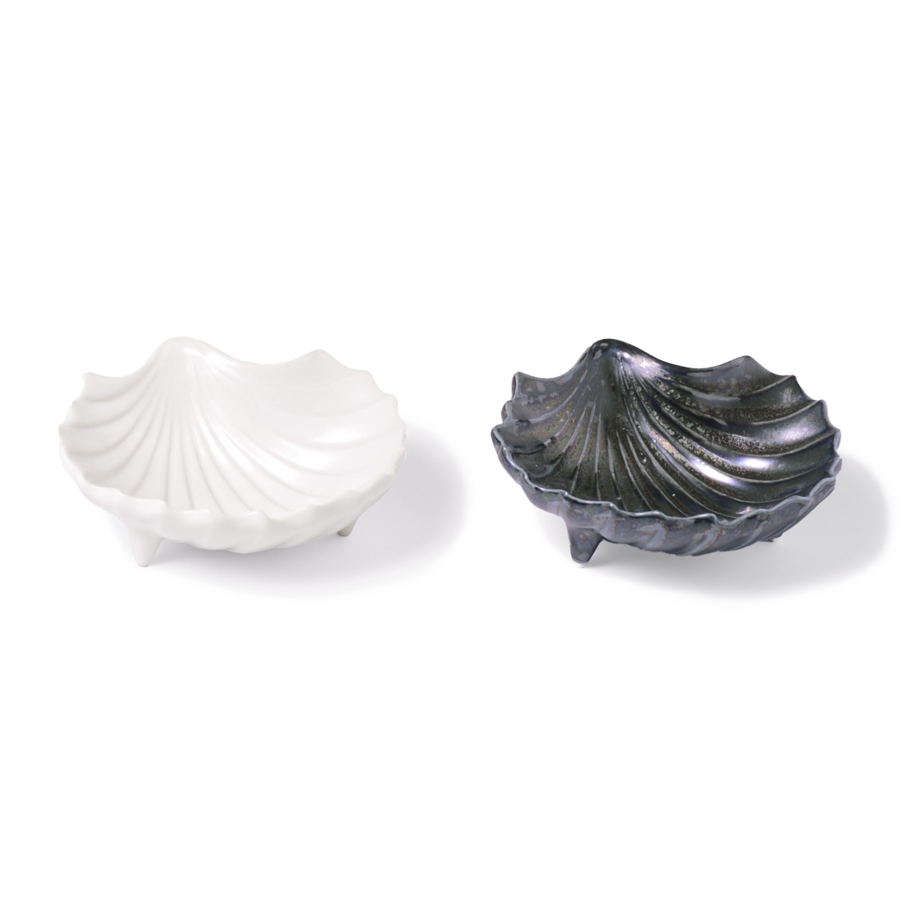貝殻をモチーフにした三つ足がアクセントのコンキリア。単体の小皿としてでも華やかで、お重やプレートと組み合わせても変化に富んだ演出ができます。窯変黒は窯内部の化学物質と器の土や釉薬に含まれる物質が反応し合うことで、様々な色相が生まれます。深みのある光沢は独特な味わいがあります。