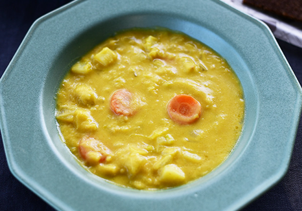 デンマークでは、緑ではなく黄色のえんどう豆が一般的。1766年にはグーレ・エルダルのレシピが存在していたことからも、 昔から国民に好まれている伝統的なスープであることがわかります。黄色えんどう豆をたっぷり使ったグーレ・エルダルは満足感があり、体も温まる、そして栄養も満点で冬に人気のスープです。このスープには豚肉や燻製されたお肉、ライ麦パンなどが一緒に添えられます。 黄色えんどう豆を顆粒状に加工したものがあり、手軽に作れるので家庭料理としても定番です。