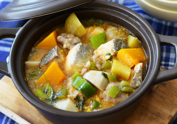 カルドサントはプエルトリコのロイサ市発祥。ココナッツのスープに塩漬けの魚や、かぼちゃ、さつまいも、タロイモなどの根菜、グリーンバナナで作るお団子が入った具沢山なスープです。名前は英語で「聖なるスープ」を意味していて、四旬節によく食べられます。ロイサは海岸沿いの街で、 昔から漁業と農業が経済活動を支えていました。魚や根菜類が家庭でもよく登場し、カルドサントは食べるとホッとする家庭料理の1つでもあるそうです。