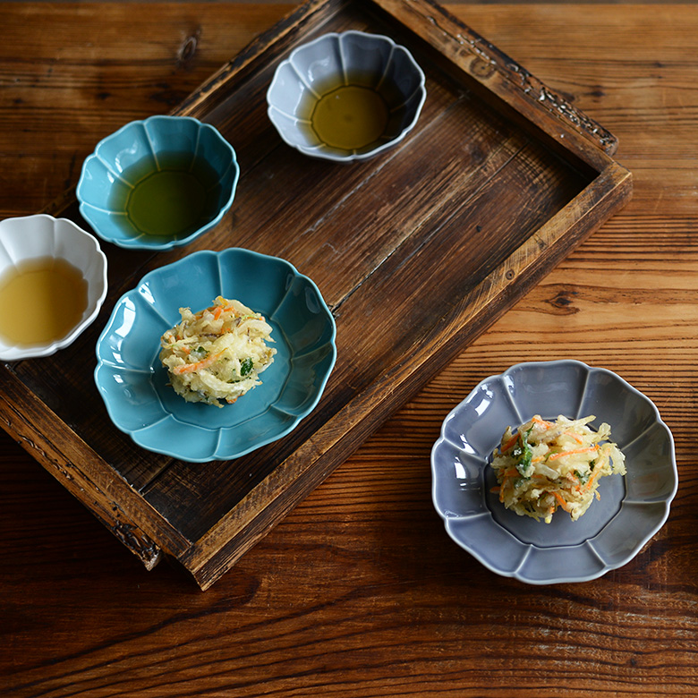 古典的な形をベースに細部の形状や色を工夫し、現代の食卓にマッチする花型の器。