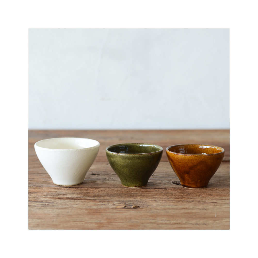 By using rough clay and making the shape as simple as possible, the charm of the clay texture is elicited. That is why the "Cro_ton" bowl gives a warm and atmospheric feeling. The three rustic colors, [White] [Green] [Brown] will be well suited to both Japanese and western food. Enjoy its versatility: usable as a rice bowl, a soup bowl and a side dish bowl, etc.