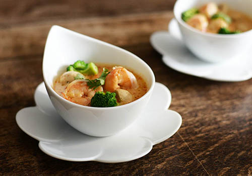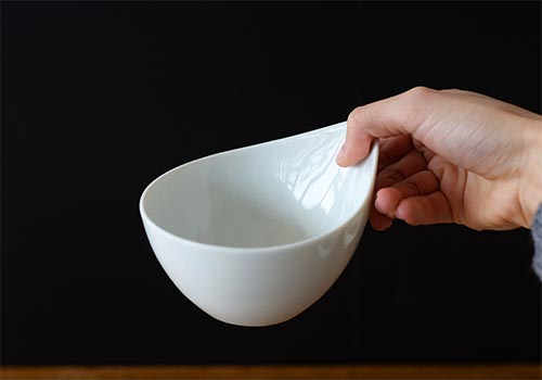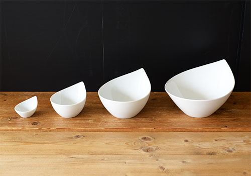 シャープでありながらも丸みを帯びた形状は、柔らかな印象で、盛り付けた料理を包み込んでくれるようです。