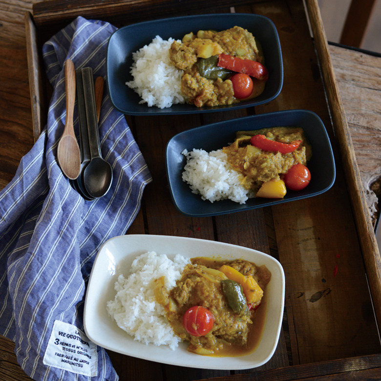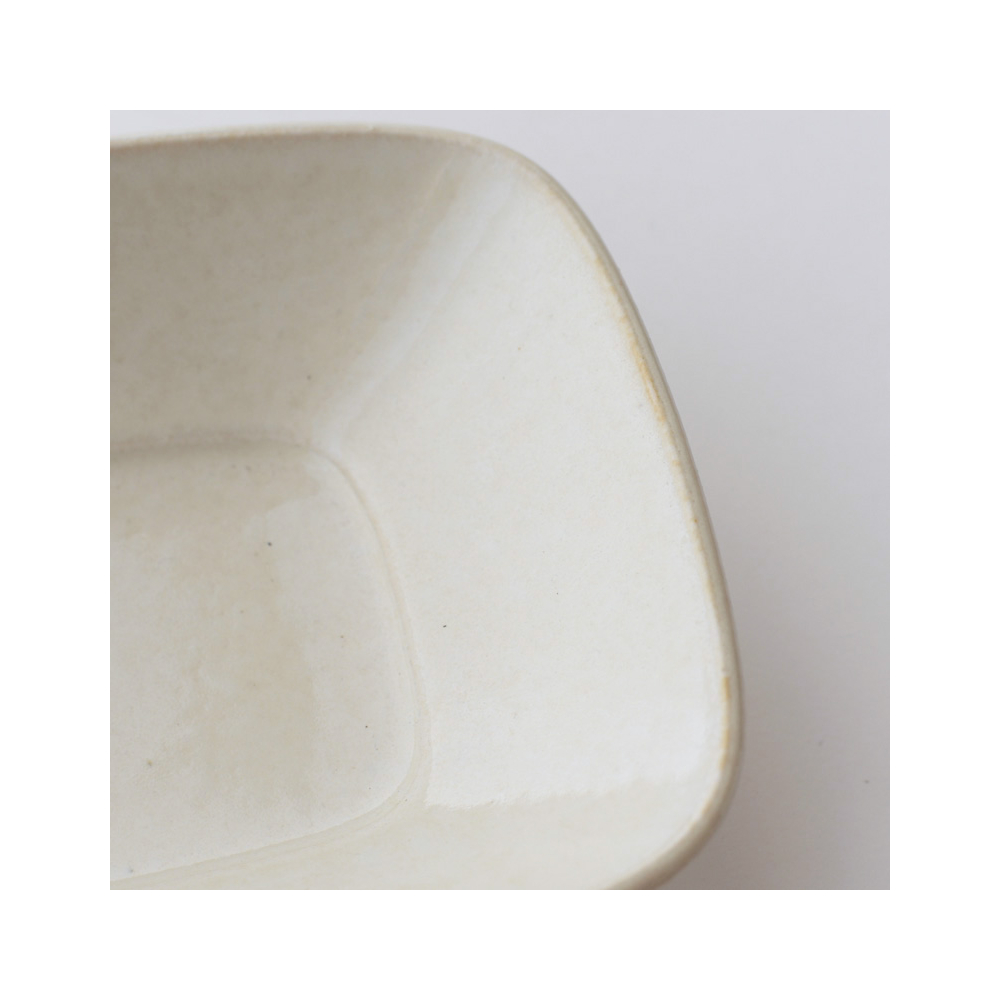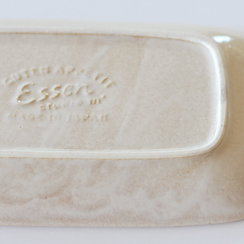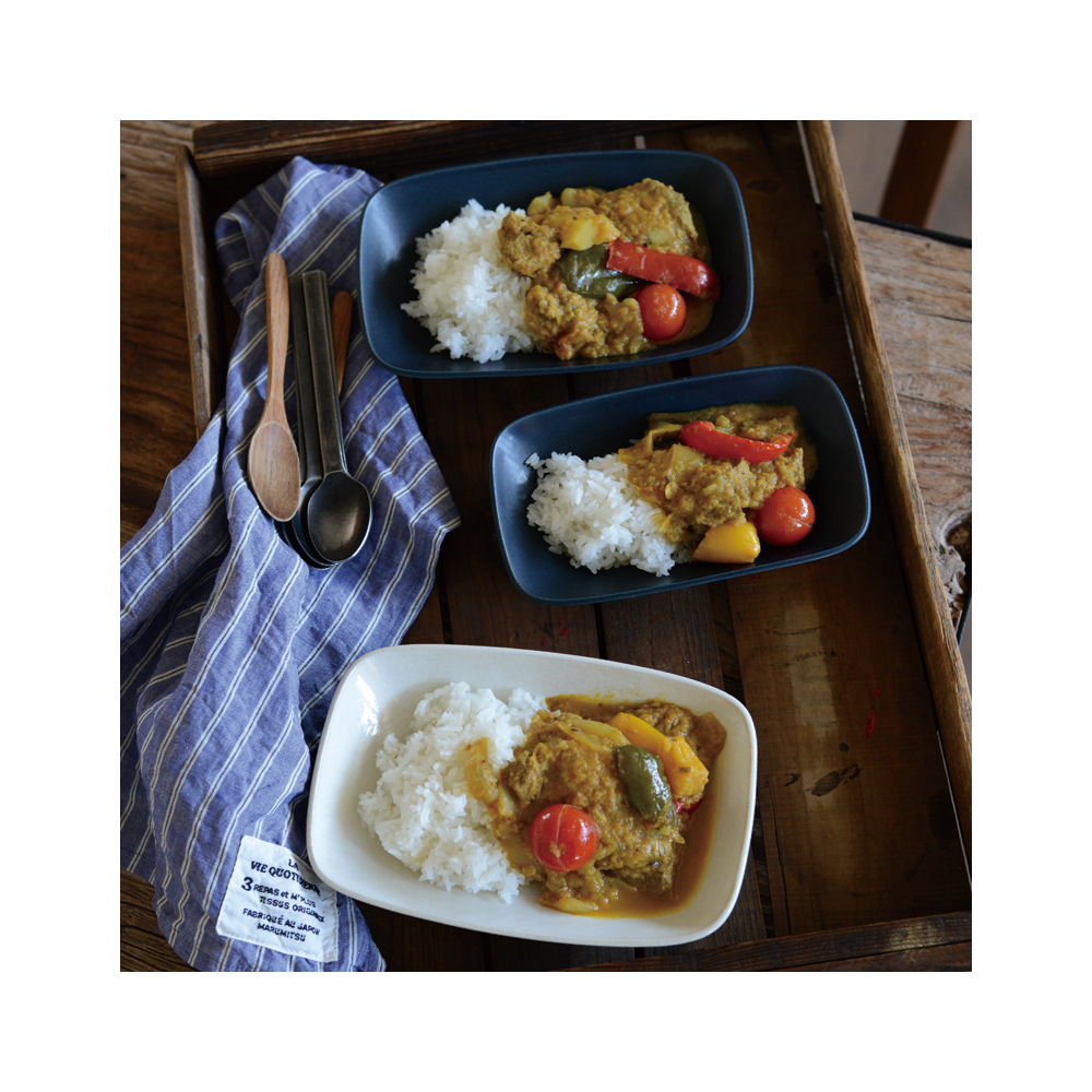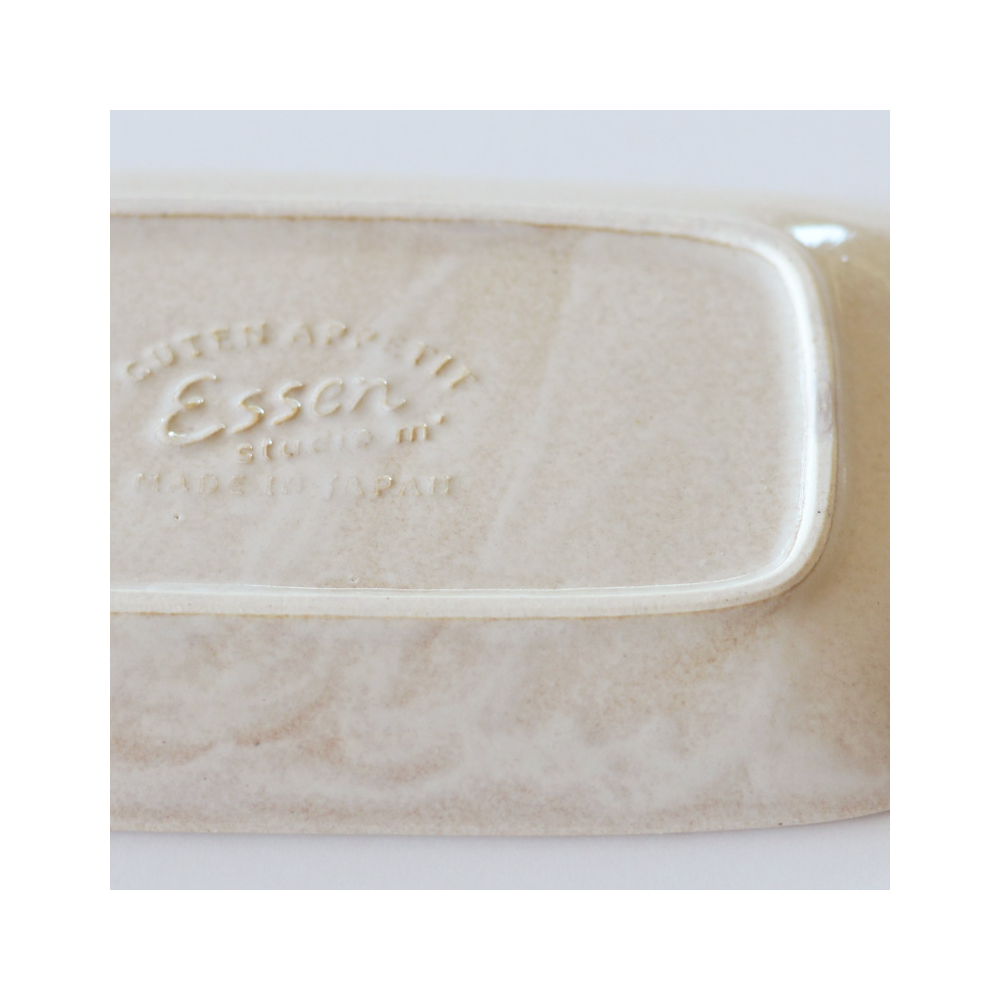 長方形のうつわのシリーズ、エッセン。食卓に自然と溶け込む形、やさしい素材感と落ち着いた色味。使いやすい5種類のアイテム展開で毎日の食事で活躍。釉の風合い、縁に少し出てくる焦げ目など陶器の持つ味わいを感じられます。深皿Sは角煮やブリ大根など銘々の鉢として、また深皿LとSを使って親子でカレーやシチューを食べて見たり。毎日使いたくなるシリーズです。