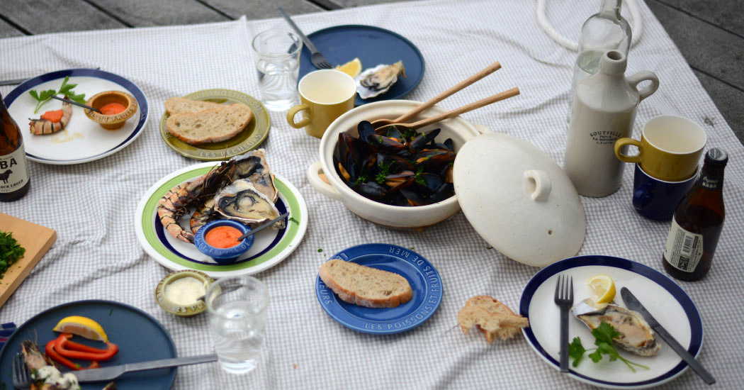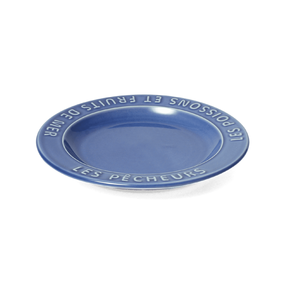 漁師町のレストランで使われているという設定で食器をイメージ。リム部分に大きく入れた凸文字が料理やテーブル全体を活気あふれる雰囲気に。いわしをモチーフにした小皿も調味料や薬味、ソースなどを盛ってテーブルの上を泳がせてみて。