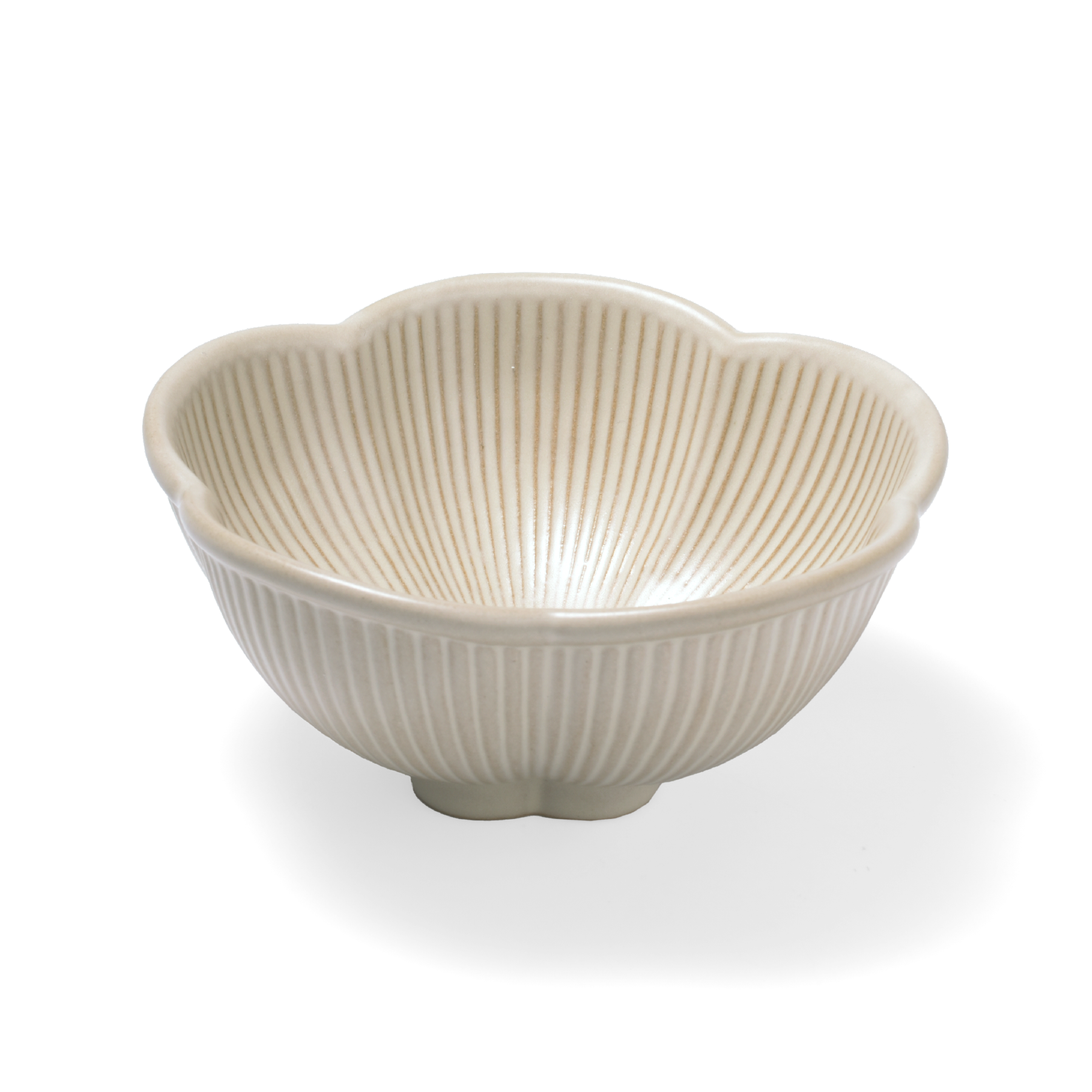 チャーミングな花形の高台も見どころのひとつ。裏印は手描き文字から型をおこし温かみを添えています。