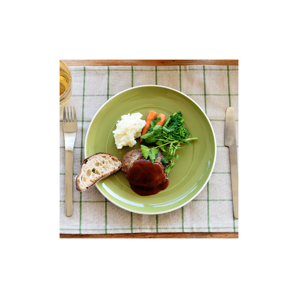 "Francisco" tableware series is associated with the west coast in US. The inner circular line is so exquisite that you can nicely dish up both along the line and across the line up to almost the edge. Why don't you build up a collection of "Francisco" series: there are four types of plates, three types of bowls and a set of cups/saucers/teapots all in five colors? Moreover, you could also use them along with "Budino" bowls or "Pieno" bowls that have the same colors as "Francisco" series. [24 round plate] is very good as a dinner plate, and also available as a smaller platelunch plate to serve bread, eggs and salad.