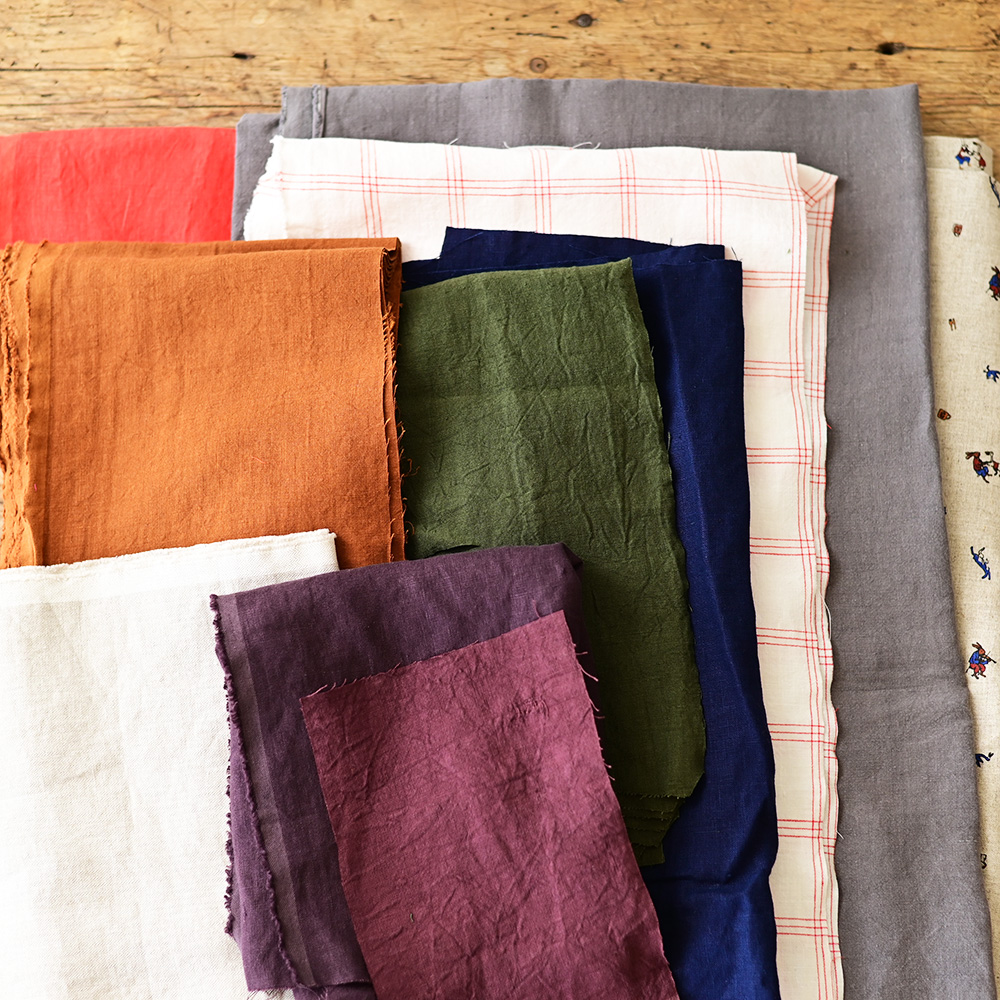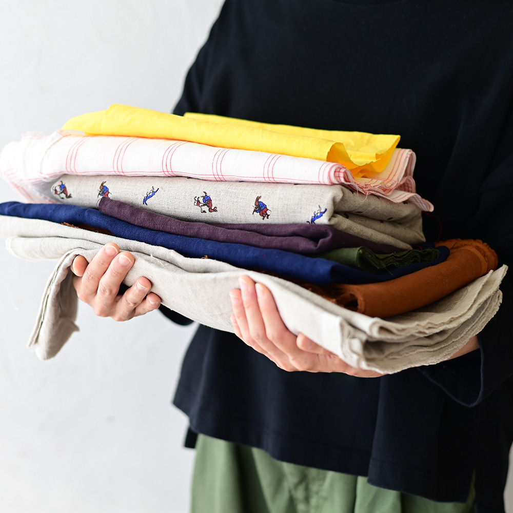 エプロンや洋服を作ったときの上質な国産リネンやウール端切れをたっぷり1kg詰め合わせました。