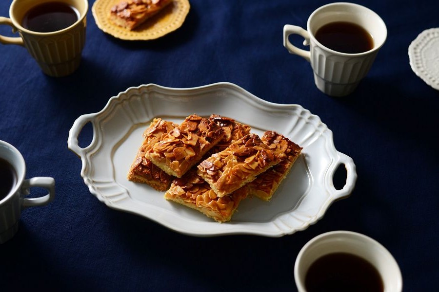 シンプルな焼き菓子の盛り合わせや、ティーポットとカップをのせて、