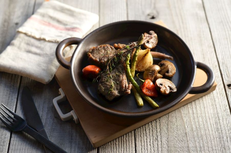 取っ手まで一体となったデザインは、まるでフライパンのよう。