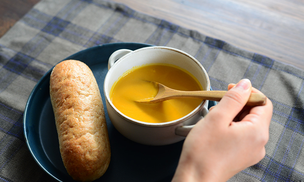 かぼちゃの自然な甘みがゆっくり広がり、味わいに深みが増して。ひと口ごとに身体が温まり、心がゆるやかにほどけていく。そんな安心感が、静かに広がります。