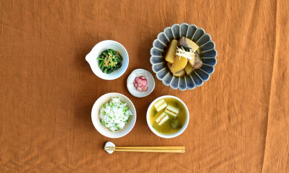 春の気配を感じて、冬ごもりしていた虫や生き物が外に出てくる頃。 暖かい日差しや植物が芽吹く姿に春の訪れを感じます。 そんな活動的な季節をイメージした器使いを楽しみます。