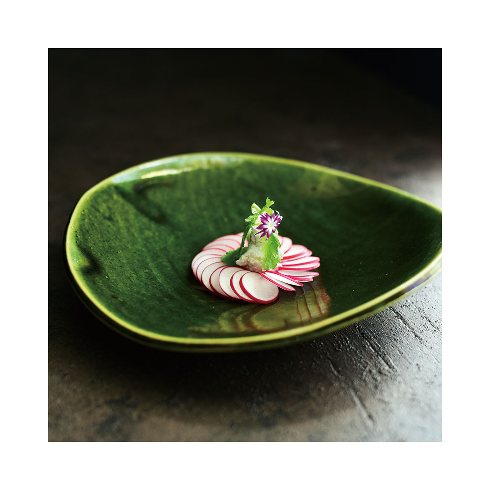 織部の色味は、フチと盛り面など1枚の器の中でも濃淡に差があり、