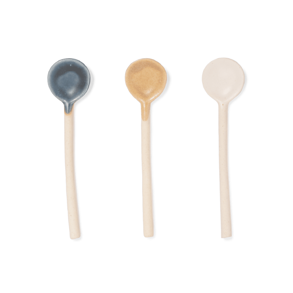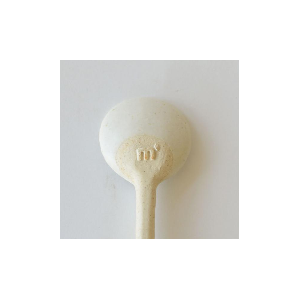 半マットの素朴な質感の釉薬を先端にだけ施し、ハンドル部分は白土の無釉で仕上げています。