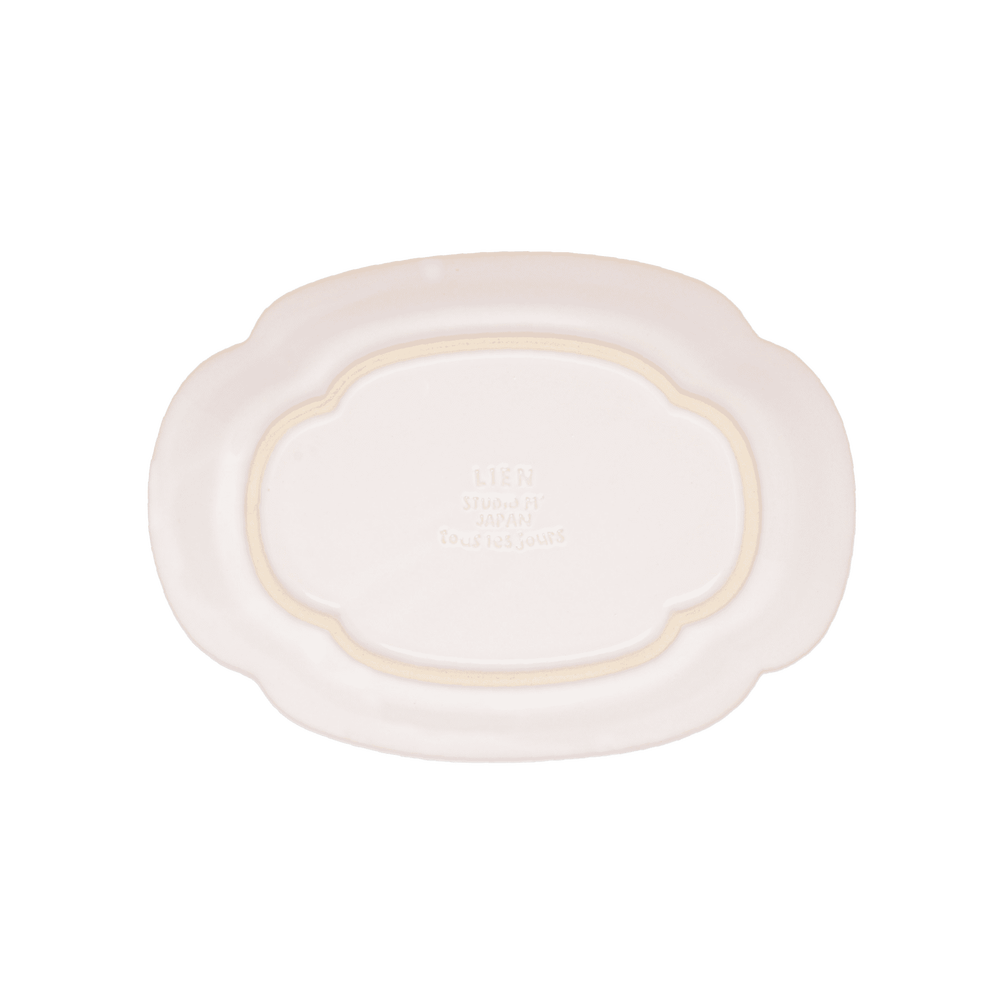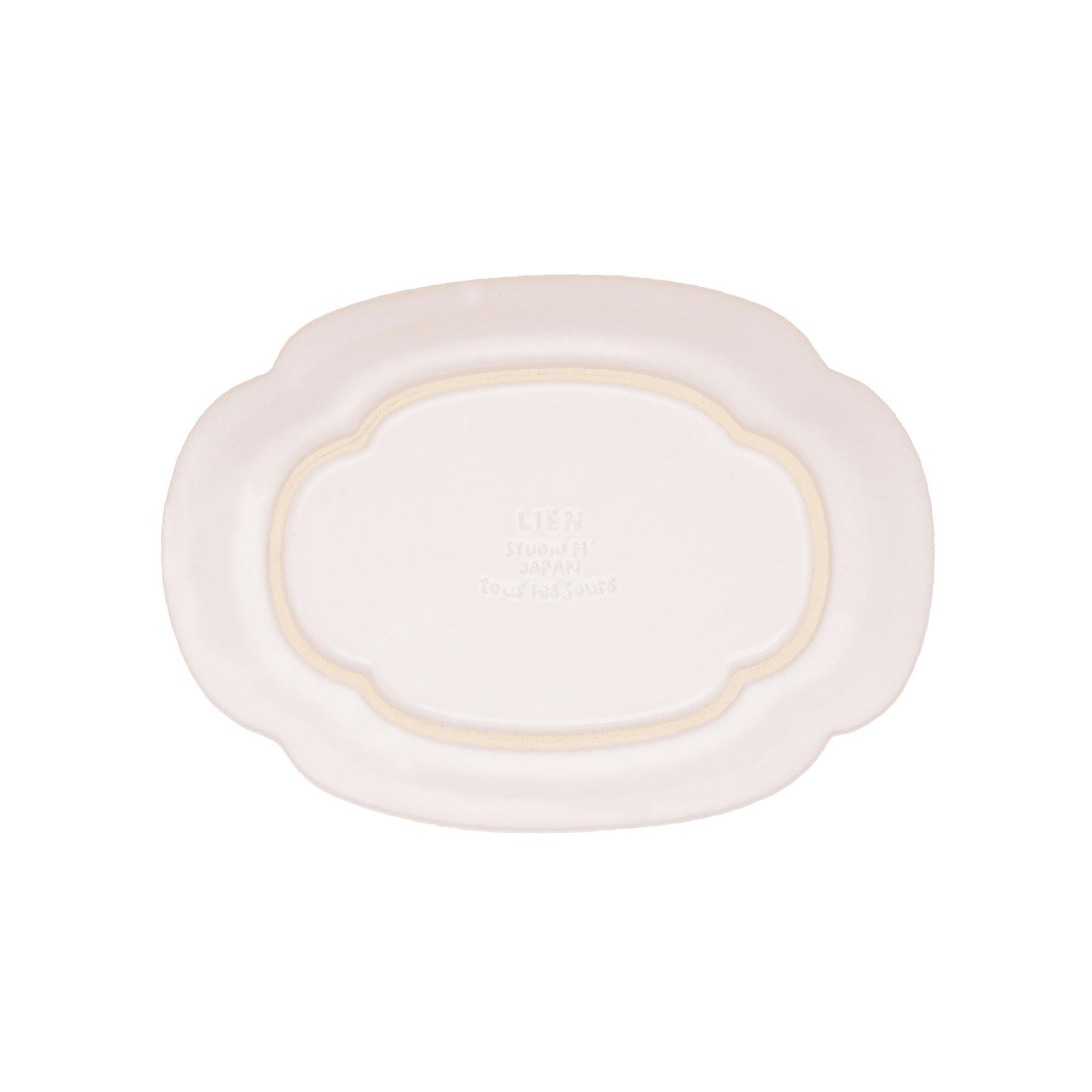 家紋や模様のひとつとされる木瓜型。取皿を脇役から主役にしたいという思いから企画。特徴のある形をいつもの食卓に取り入れてみるのも楽しい。丸や四角い器がメインだったテーブルがぐっと華やいでくる。日々使いはもちろん、おもてなしの席でも品よく料理を盛り付けできる。lienは仏語で絆。食事をともにすることでより絆が深まるようなテーブルをイメージ。焼物皿は切身魚はもちろん、春巻きのような揚げ物や天ぷら、副菜の2品盛りもおすすめです。