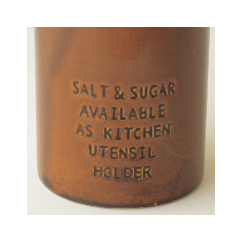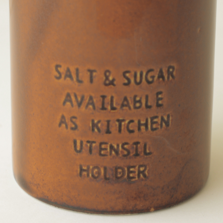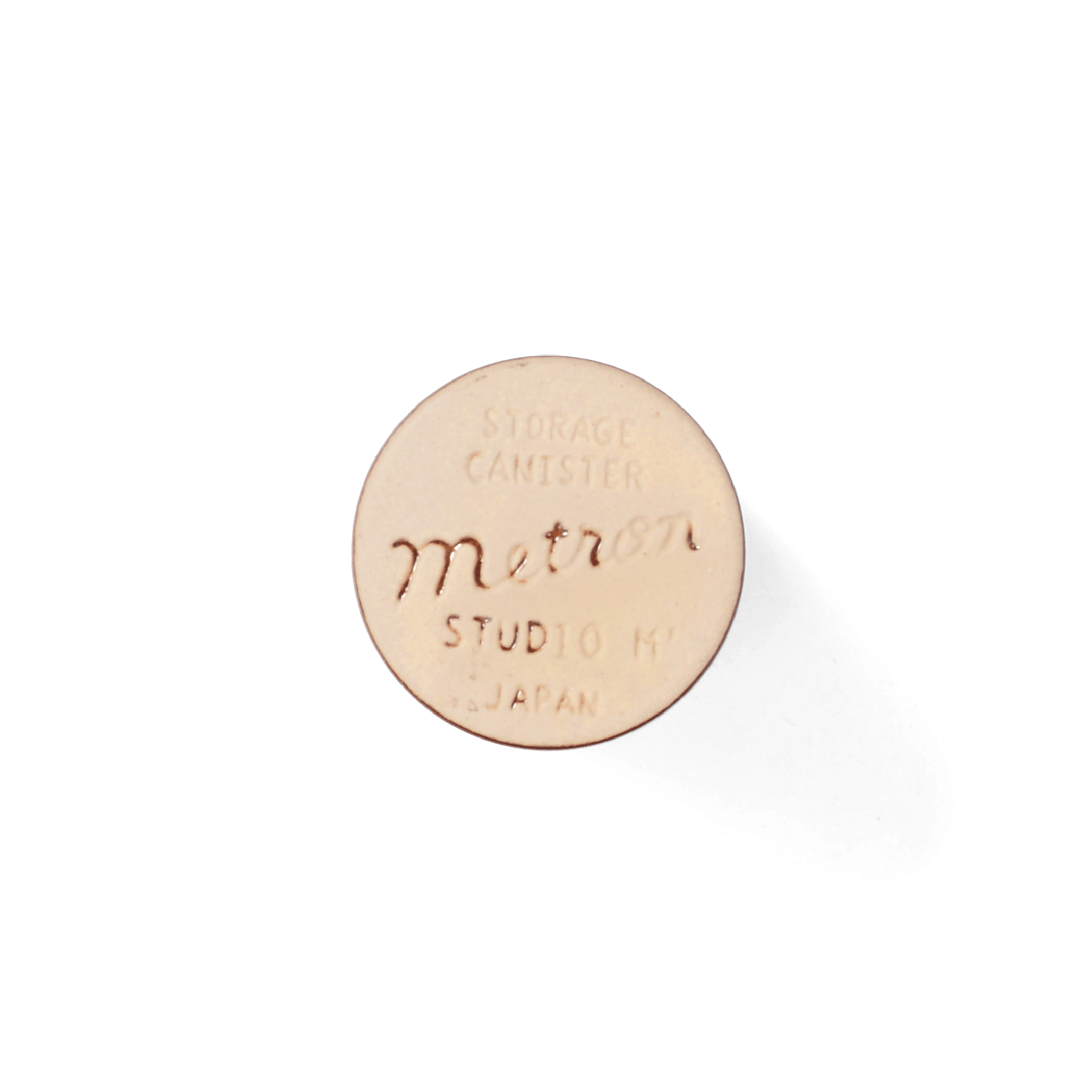 メトロンは古代ギリシャ語で測るという意味。カトラリースタンドのシンプルな円筒のスタンド。土の色を生かした素朴さが魅力。側面と裏面の凹文字のロゴもさりげないながら効いている。カトラリー立てにおすすめ。