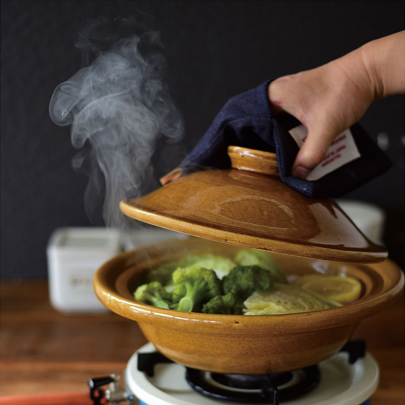 どことなく柔らかでおおらかな表情が、寒い日の夕食をよりほっこりとした気分にしてくれる土鍋です。