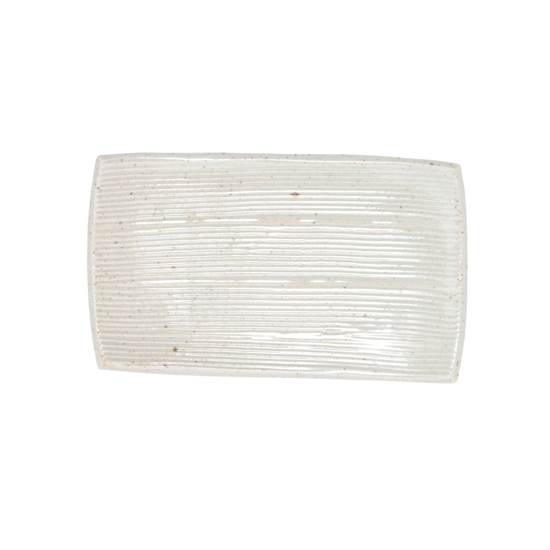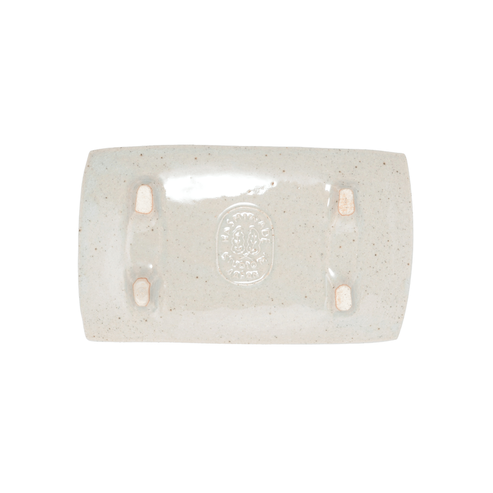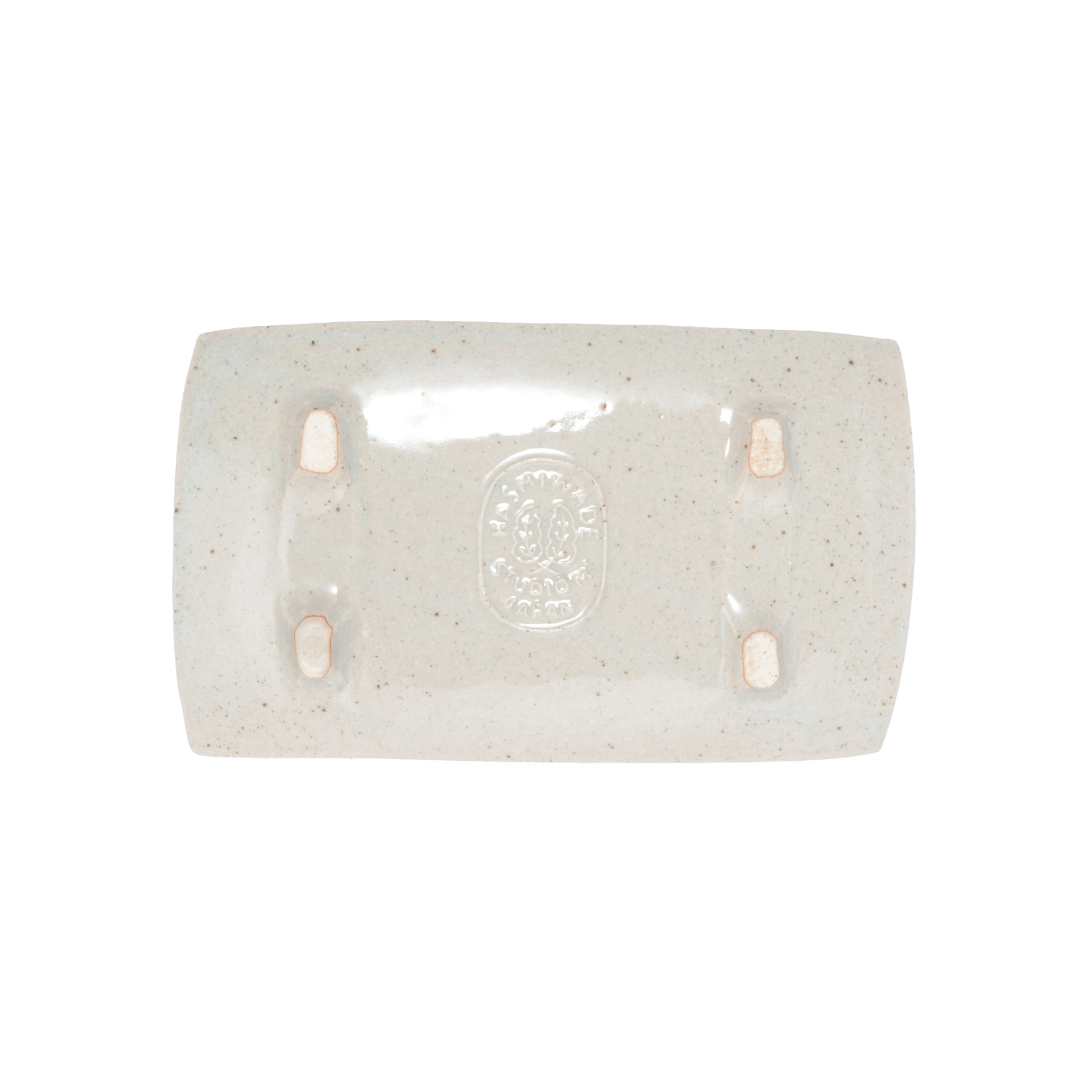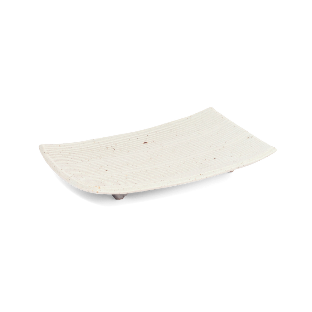 形状はたたら成形で作った皿に4つ脚をつけ、自然な揺らぎのある角皿。