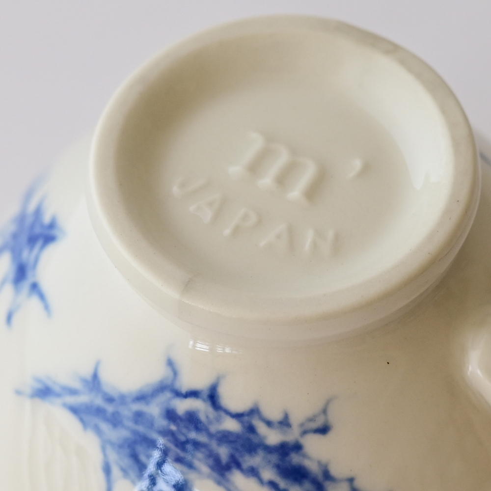 絵柄は銅版転写の技法を用いていて、柄が印刷された和紙を手作業でうつわに貼り付けています。