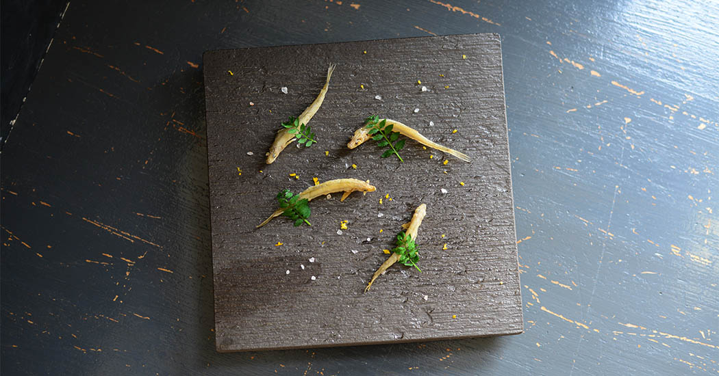 フラットなプレートなので一枚のキャンバスに描くような盛り付けが楽しめます。