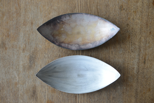 黒ずんだ銀彩の器は「いぶし銀の味わい」と言って
