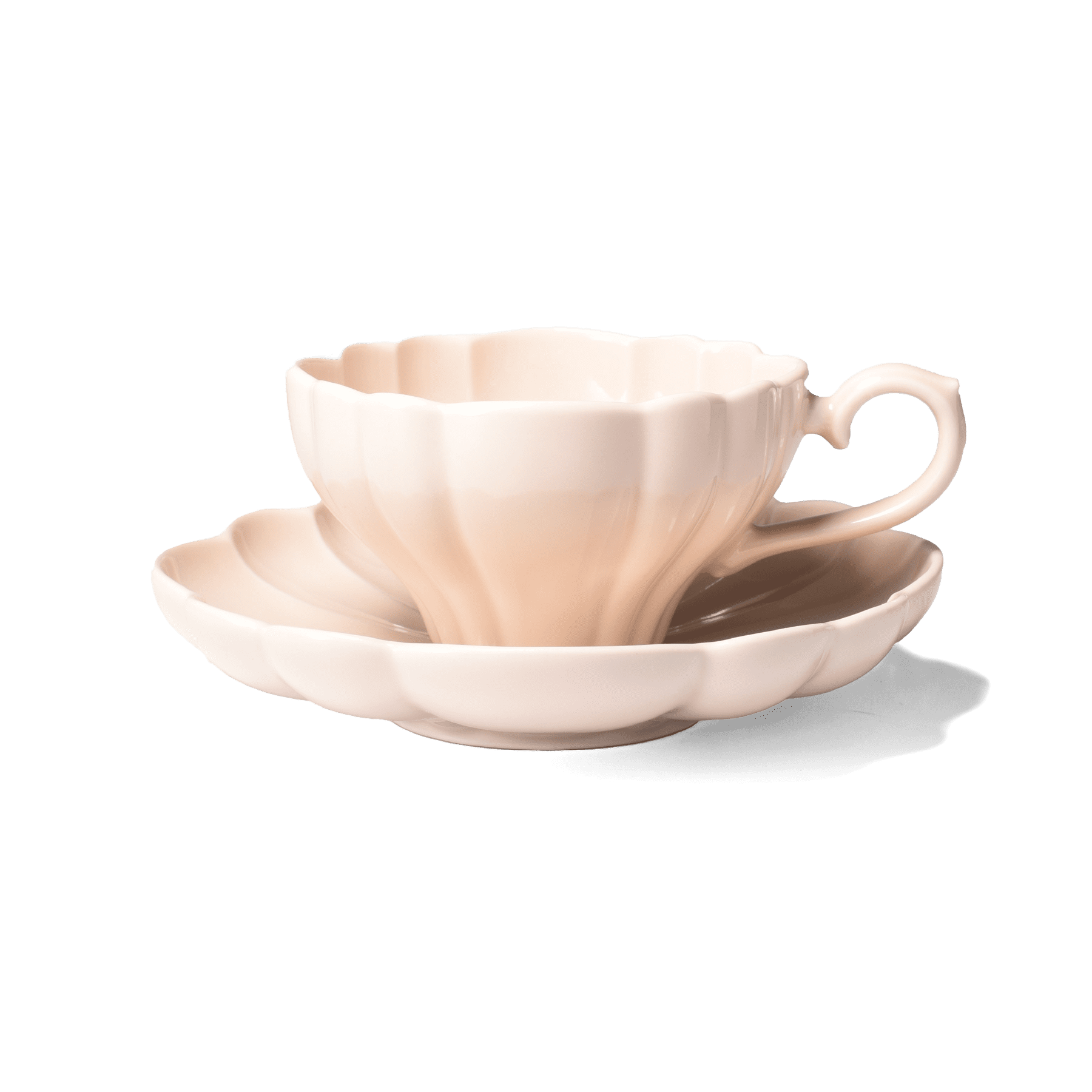 花型のカップ&ソーサーが並ぶテーブルは、まるで花束のように可憐で優雅な印象に。
