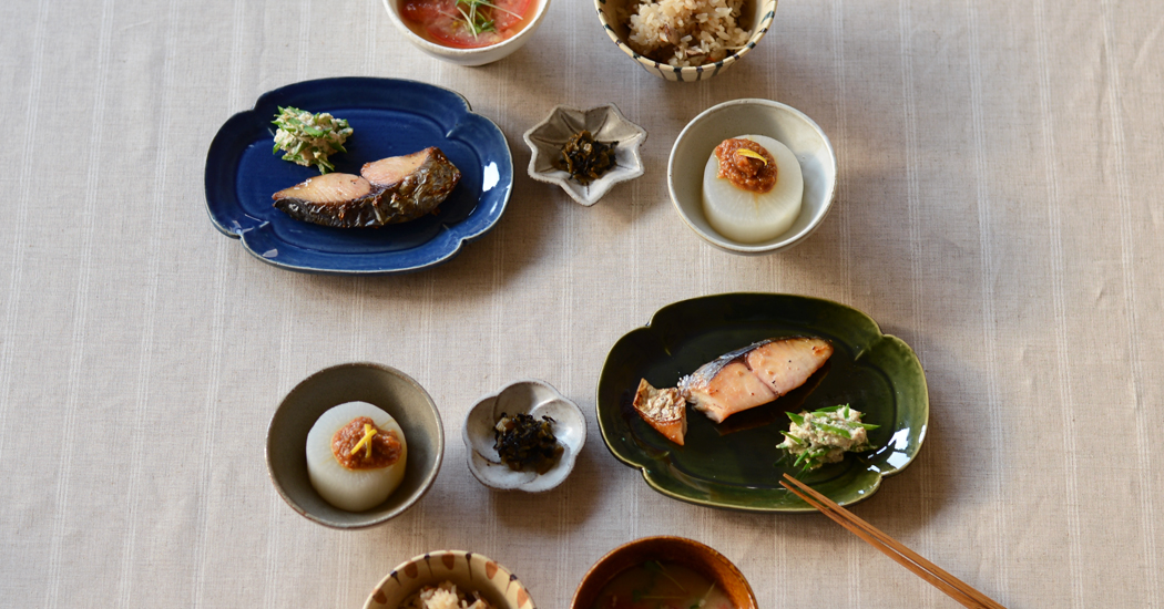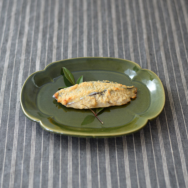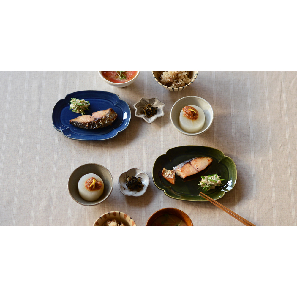 家紋や模様のひとつとされる木瓜型。取皿を脇役から主役にしたいという思いから企画。特徴のある形をいつもの食卓に取り入れてみるのも楽しい。丸や四角い器がメインだったテーブルがぐっと華やいでくる。日々使いはもちろん、おもてなしの席でも品よく料理を盛り付けできる。lienは仏語で絆。食事をともにすることでより絆が深まるようなテーブルをイメージ。焼物皿は切身魚はもちろん、春巻きのような揚げ物や天ぷら、副菜の2品盛りもおすすめです。