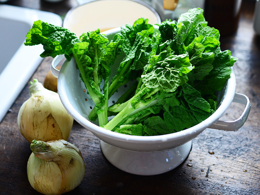 春の訪れを感じる蕾のついた菜の花。きれいな色と香り、ほろ苦さがごちそうです。今日は新玉ねぎや新じゃがの甘くみずみずしい味わいと合わせて。