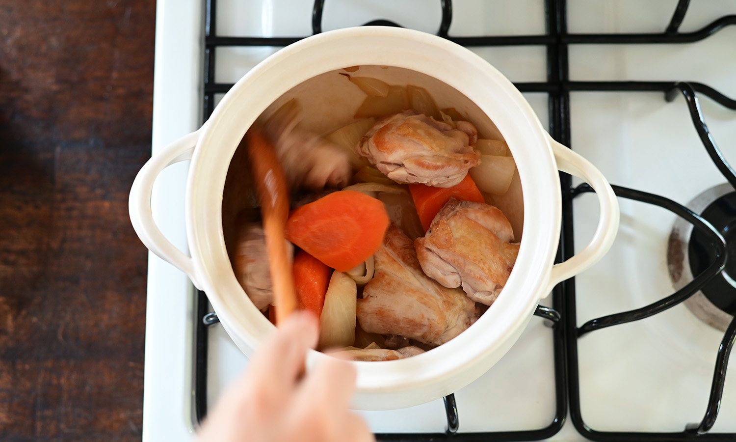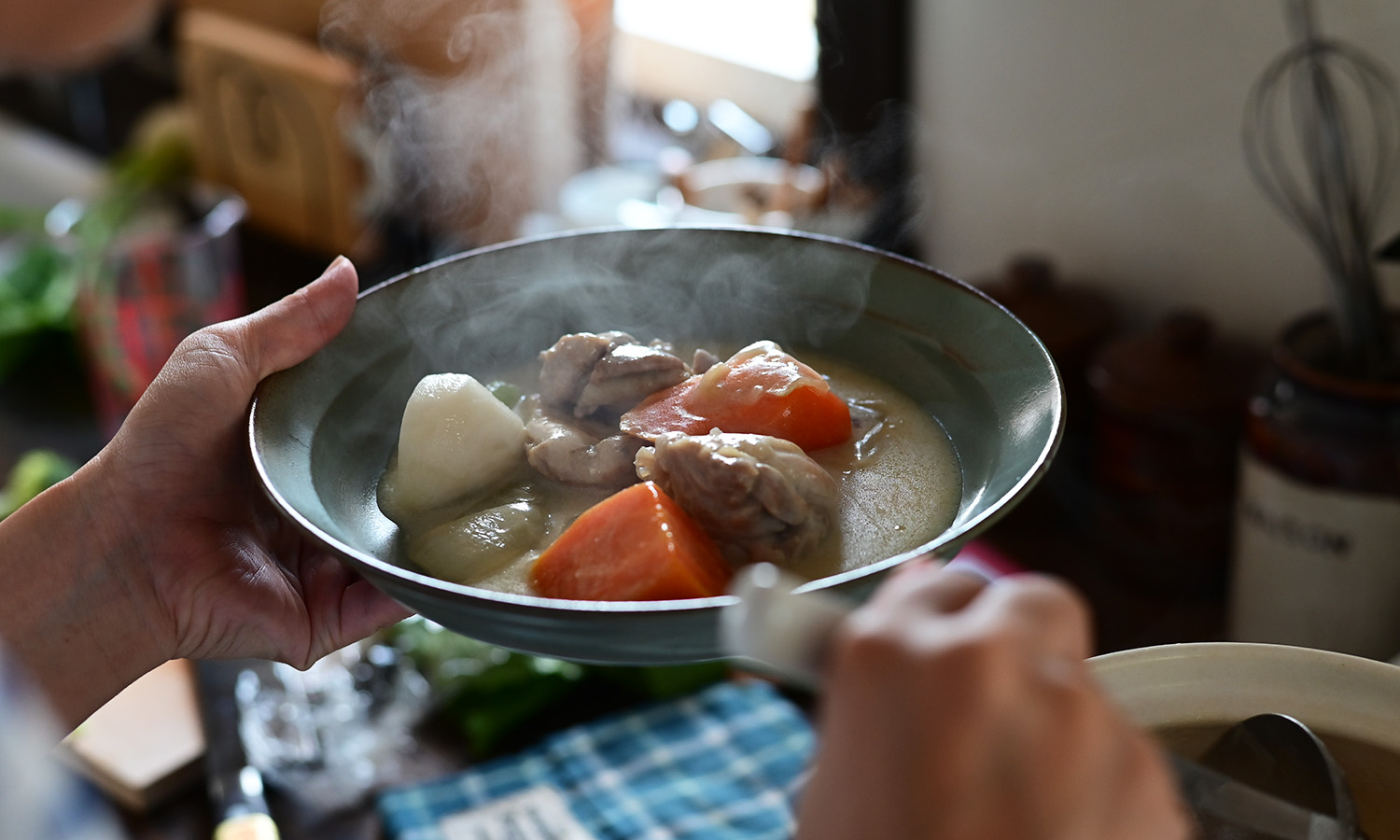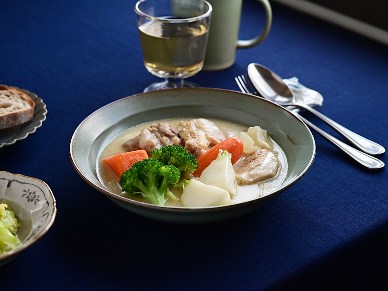 素朴でほっこりとした雰囲気の深皿に、シチューを盛って。