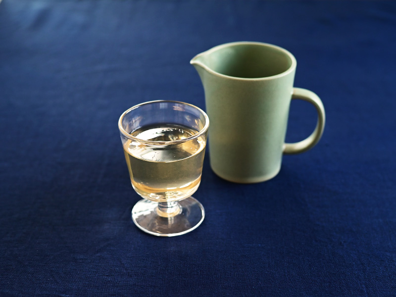 すっきりとしたシルエットの陶製のピッチャー。