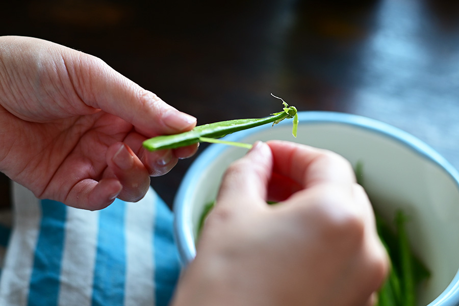 えんどうを早採りして、柔らかな鞘ごと食べるのが絹さや。